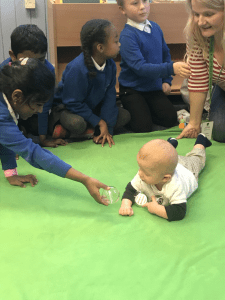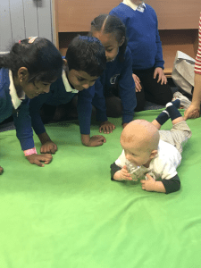 The children have thoroughly enjoyed our family visits with Harry, and his mum Kirsty and Jamie and his mum Maxine, they recognised and named baby Harry and baby Jamie’s emotional cues and facial expressions. How the mums read the emotional cues to meet their baby’s needs and this makes him feel understood. The children really enjoyed their visit, asking Kirsty and Maxine lots of questions and sharing their experiences. Recently the children have been practising for their Nativity and they sang some of the songs for Harry and Jamie including The Woolly Sheep and Jingle Bells, both baby boys really enjoyed the children’s singing and actions to the songs.