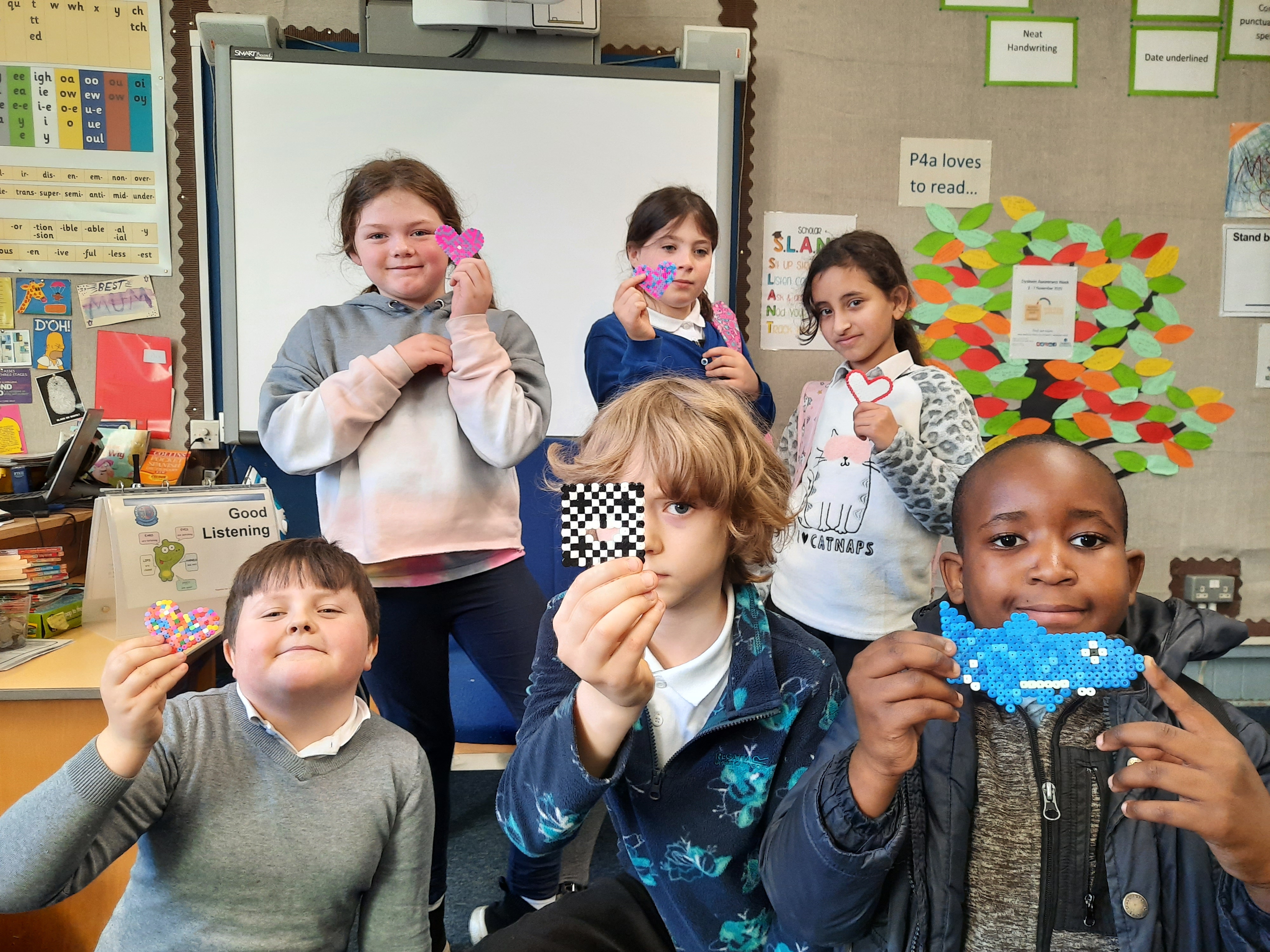 P4a had fun teaching Ms Shepherd how to play their new game of Cops and Robbers. They also enjoyed their Hama beads masterclass.
