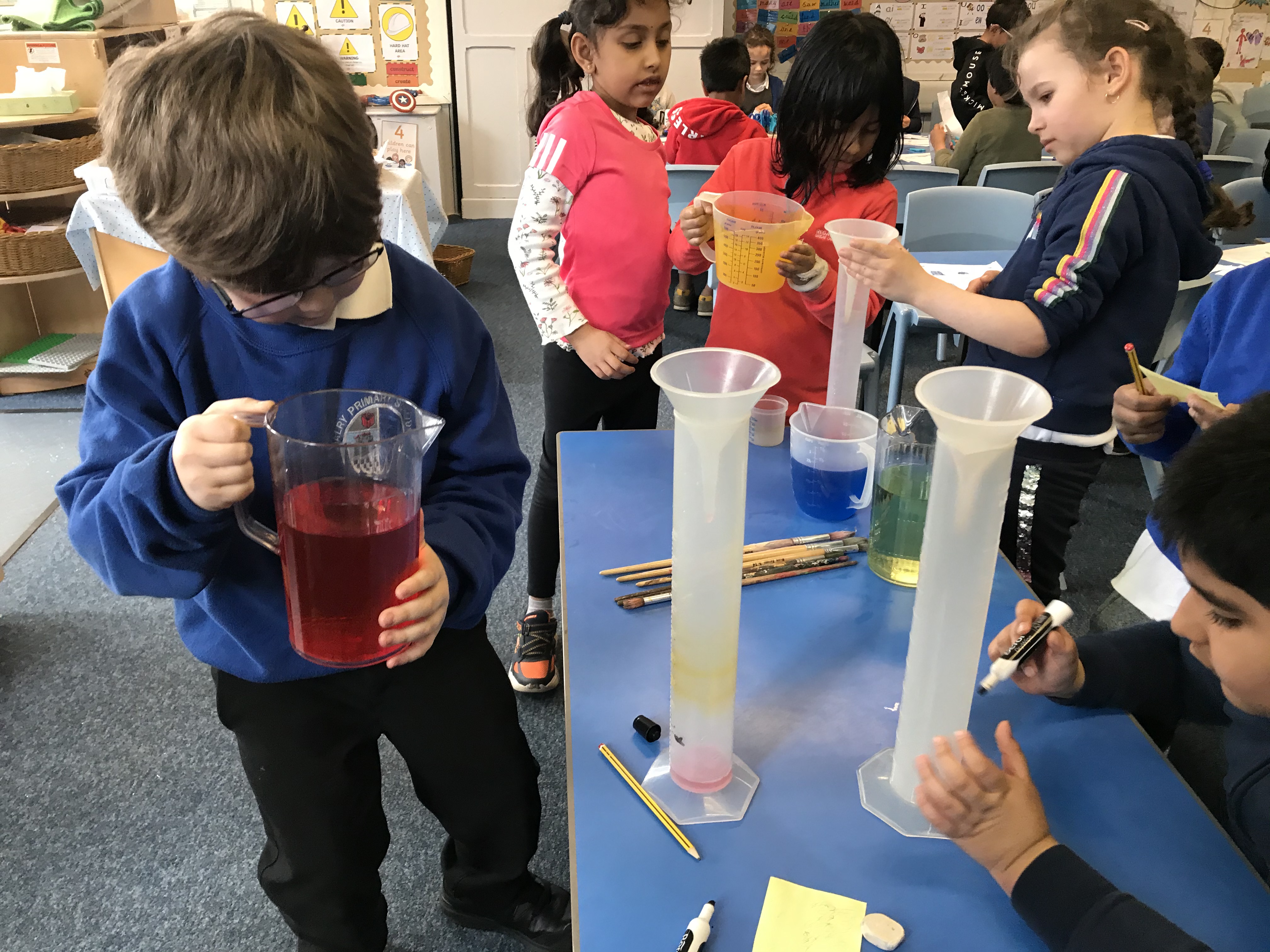 The boys and girls in Primary 2 have been busy measuring this week by making potions in groups and pretending to be builders and architects by calculating the length of objects. We have also been comparing weight and length by investigating whether something is heavier or lighter and longer or shorter with practical activities.