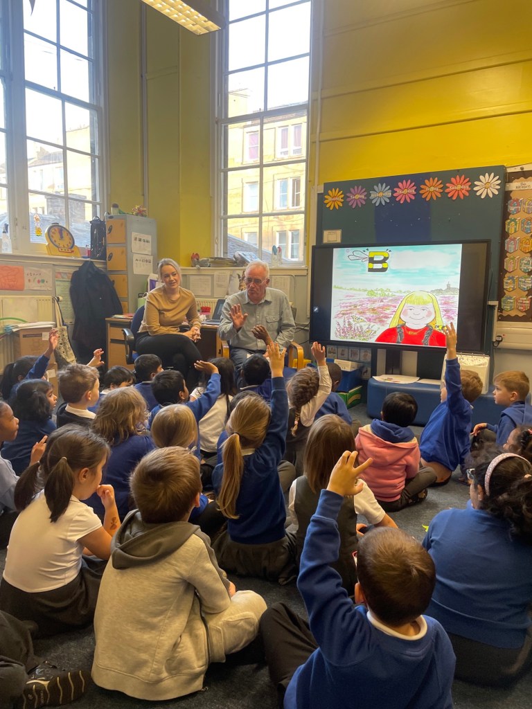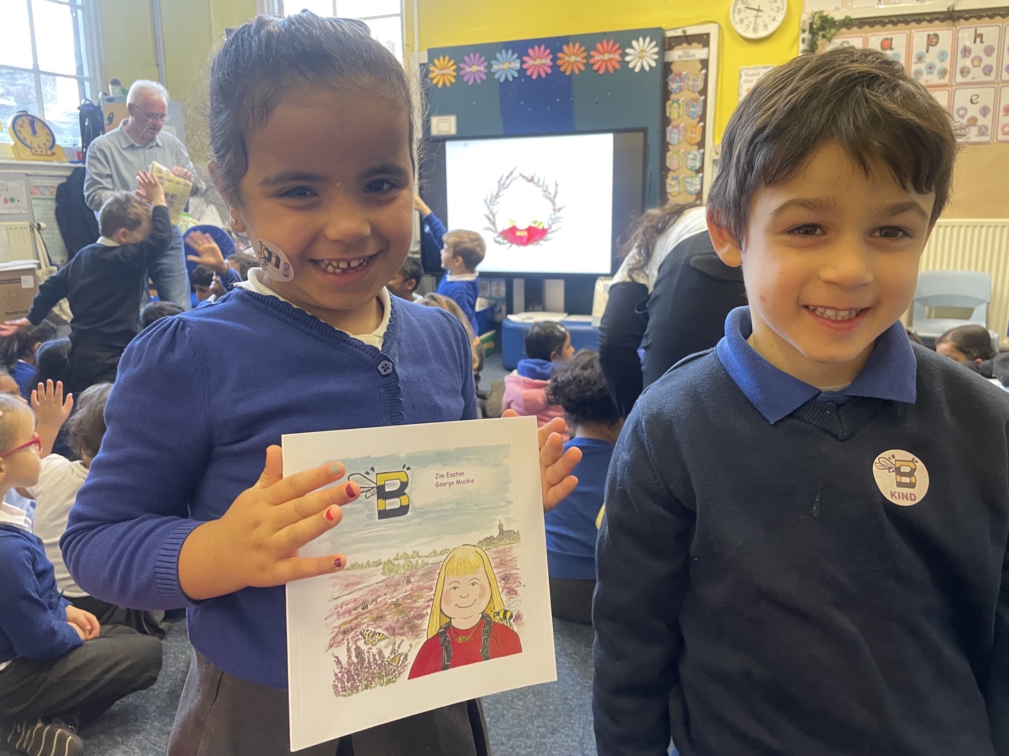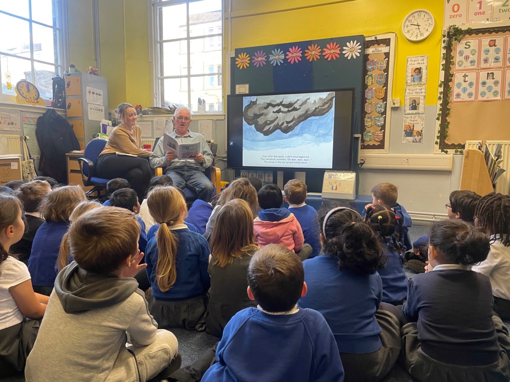 Jim Easton read us his story all about Bea and her little pet B, a little bee who gets lost.