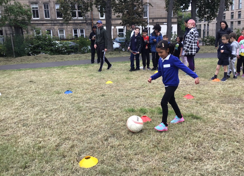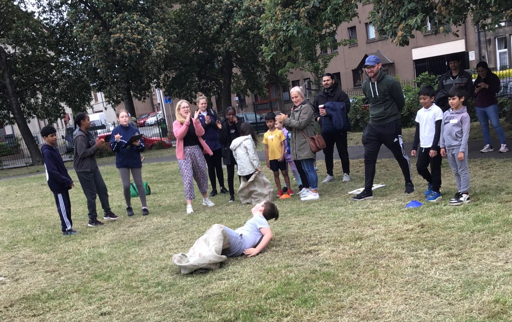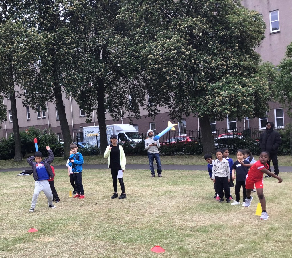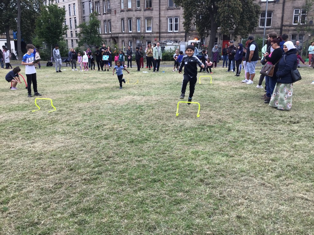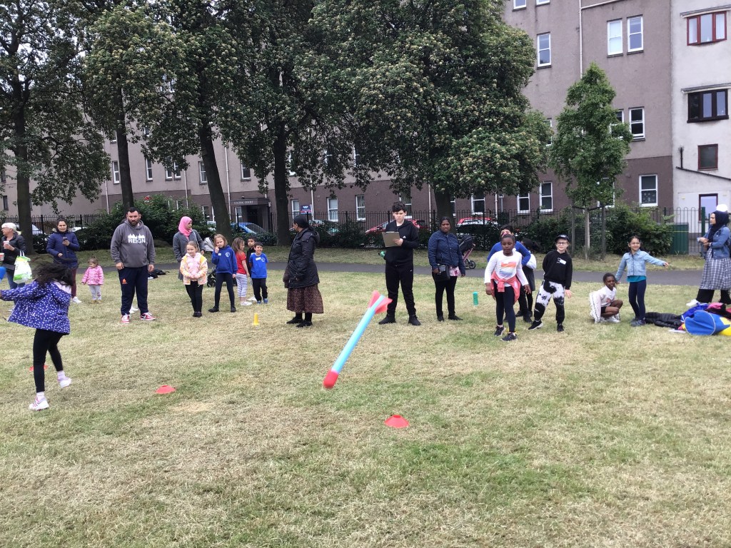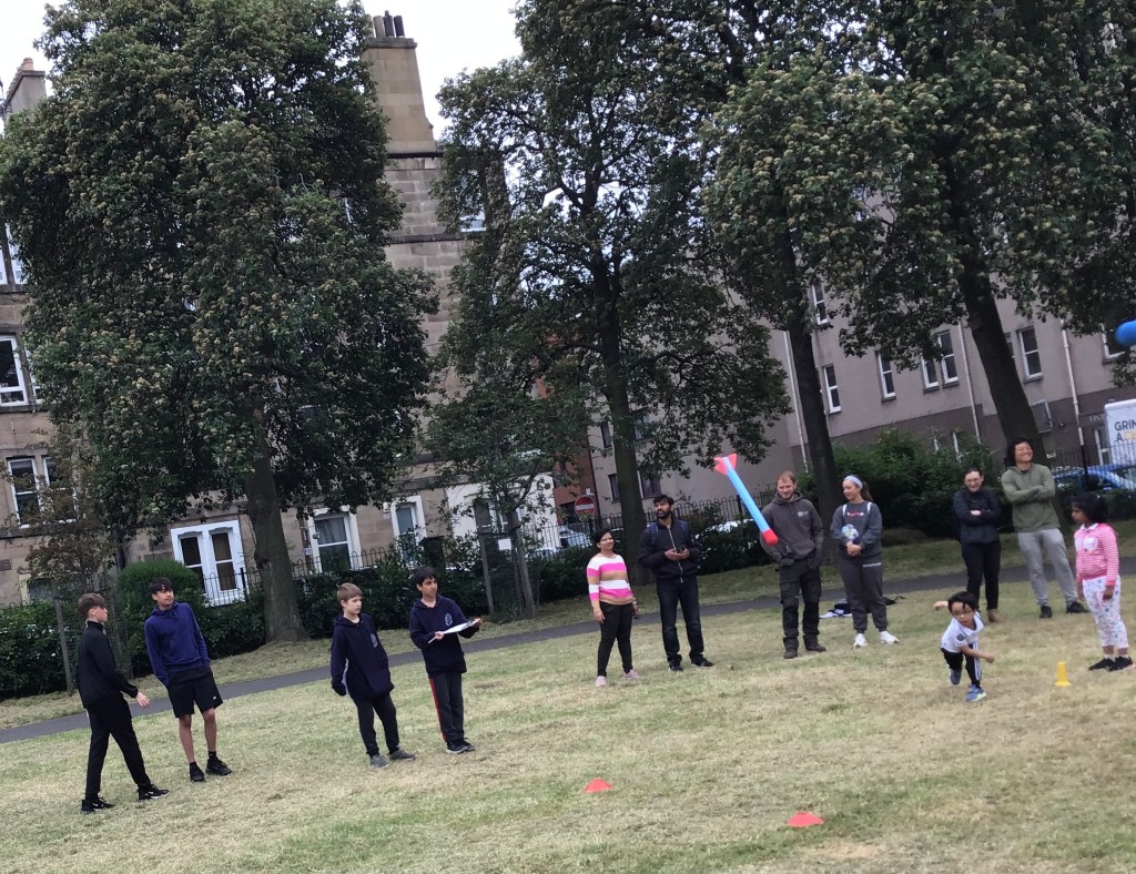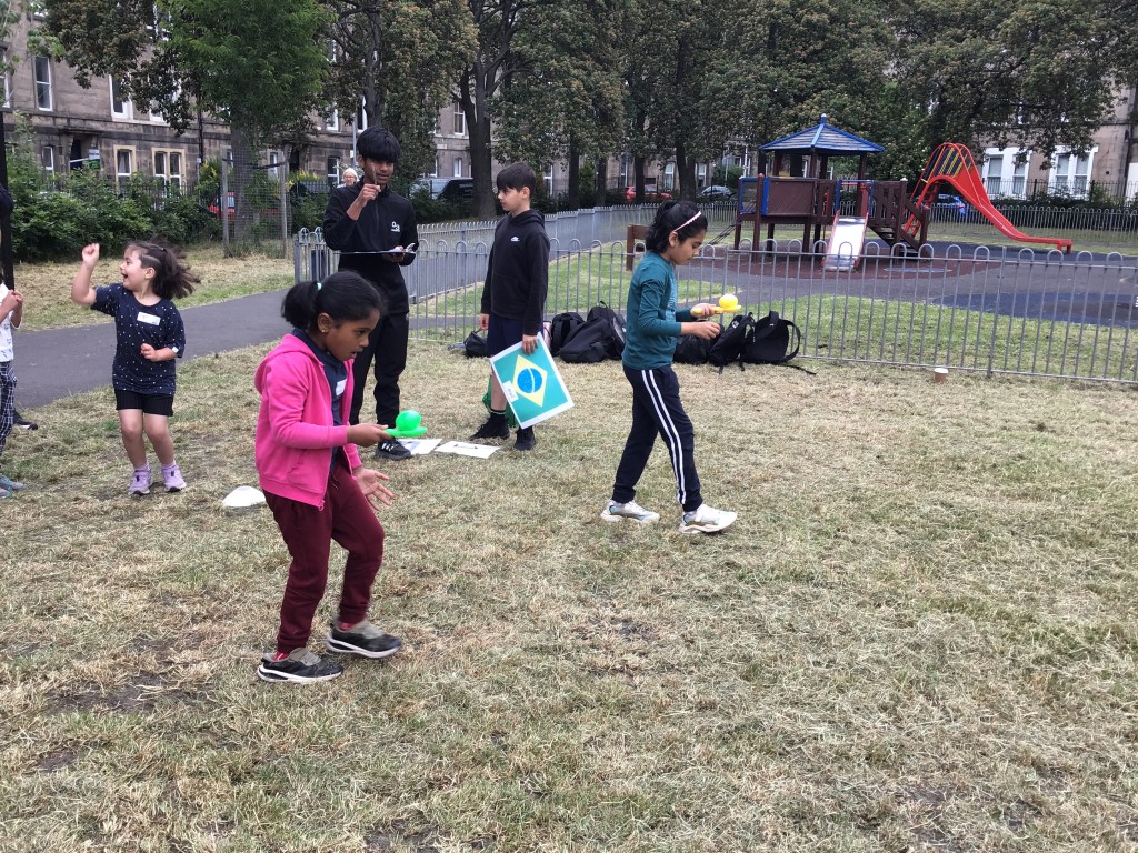 Our lower school went first split into country teams to try lots of stations with sports from football to Javelin. The sack race station was particular fun.