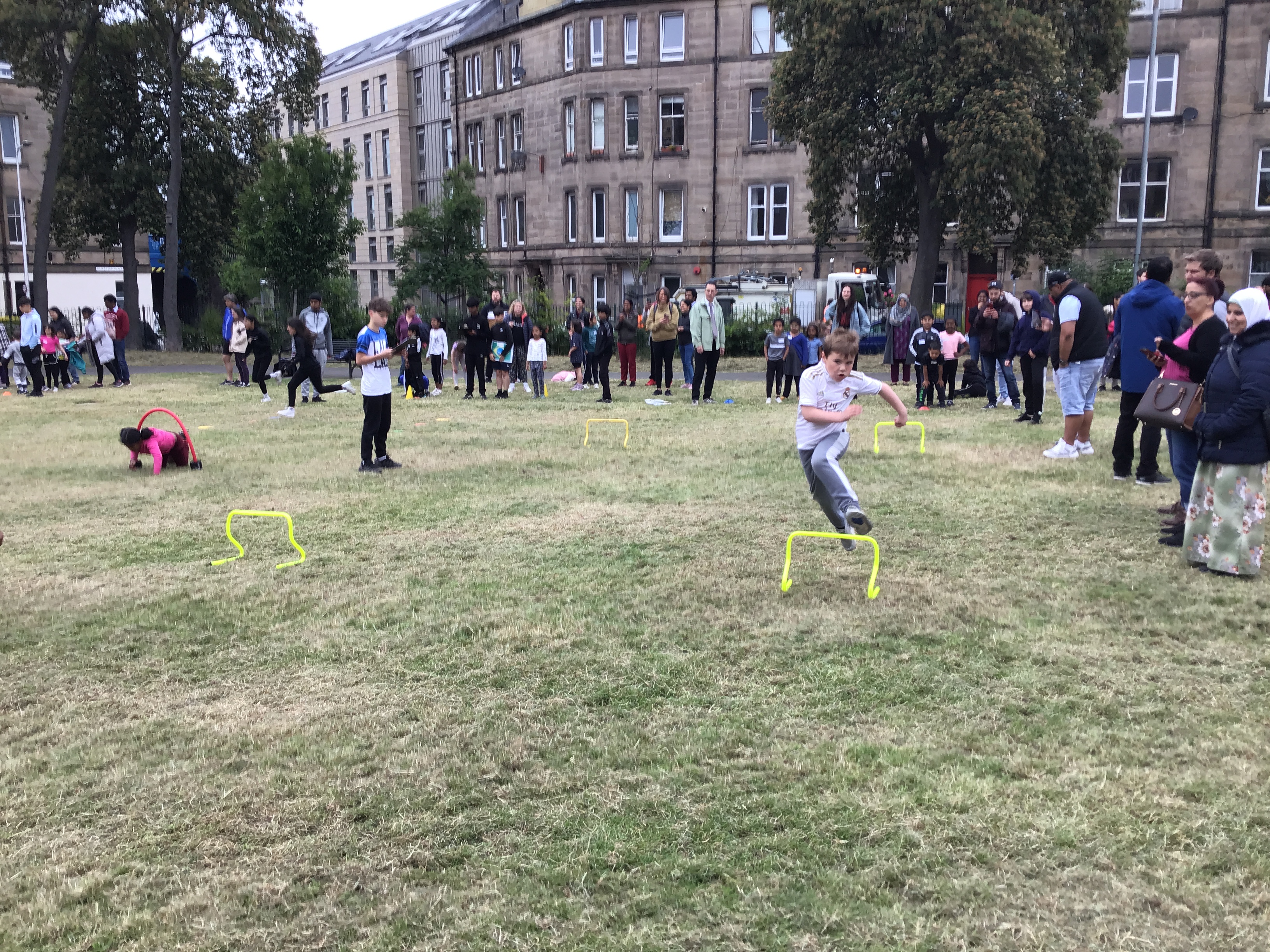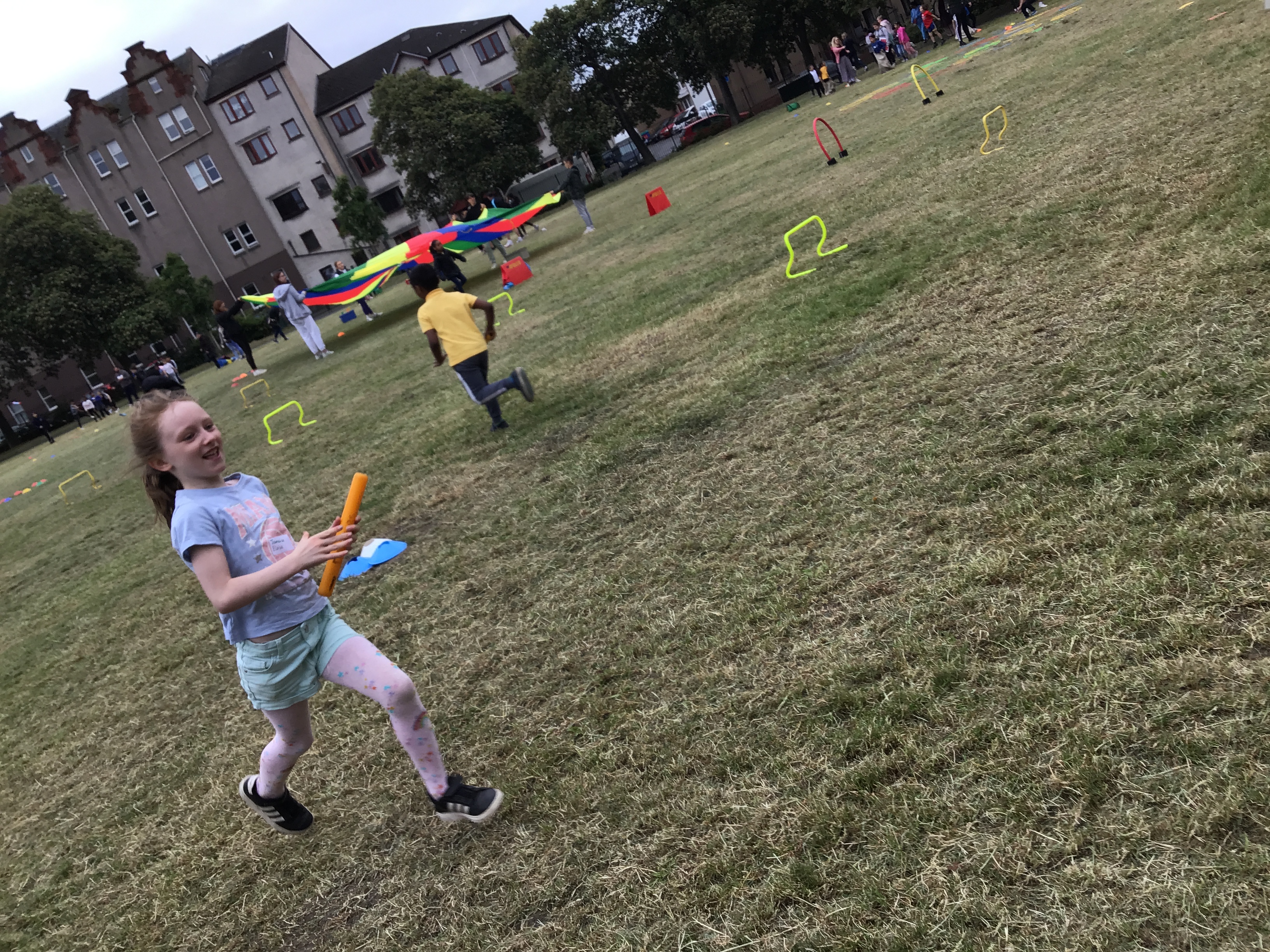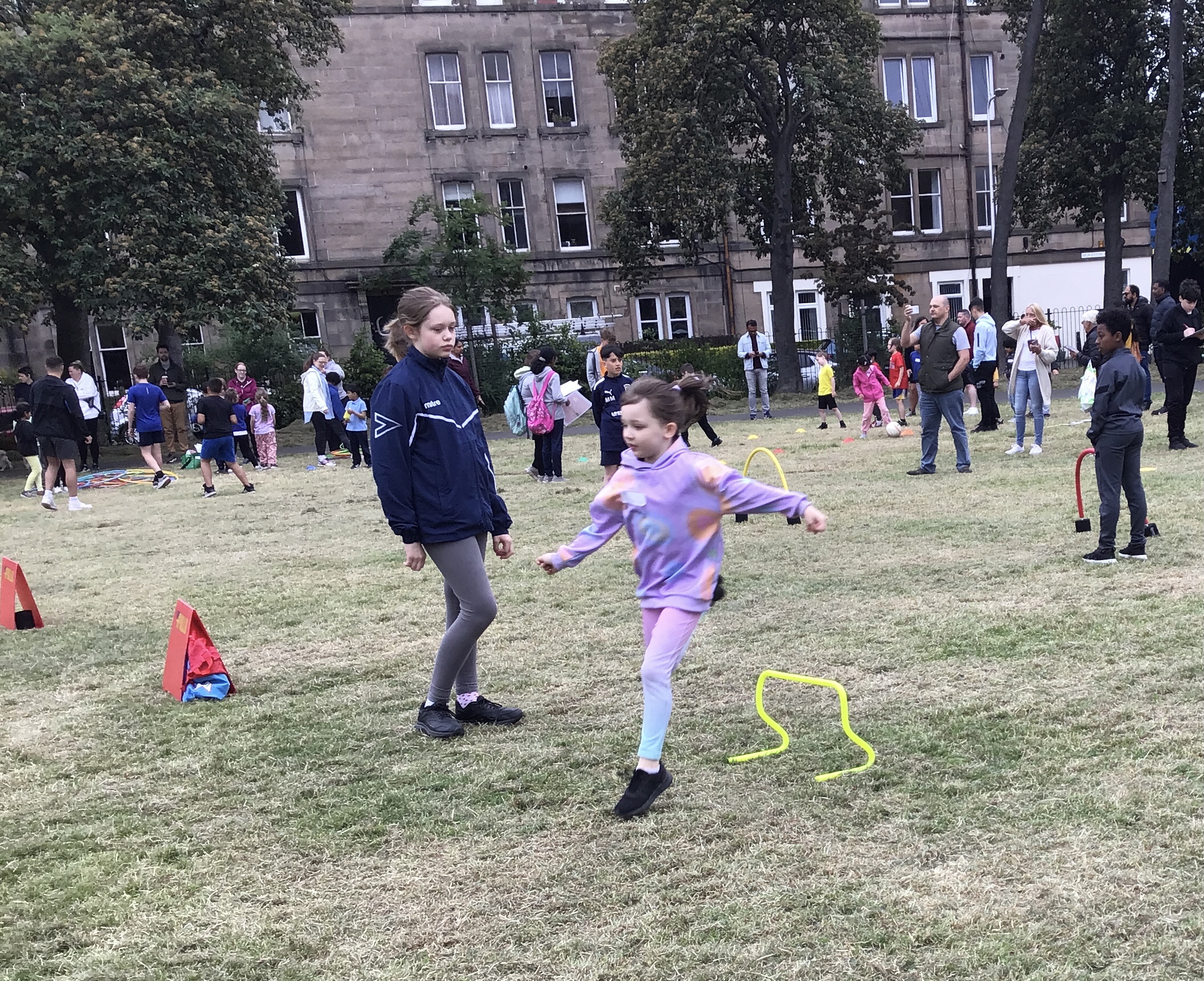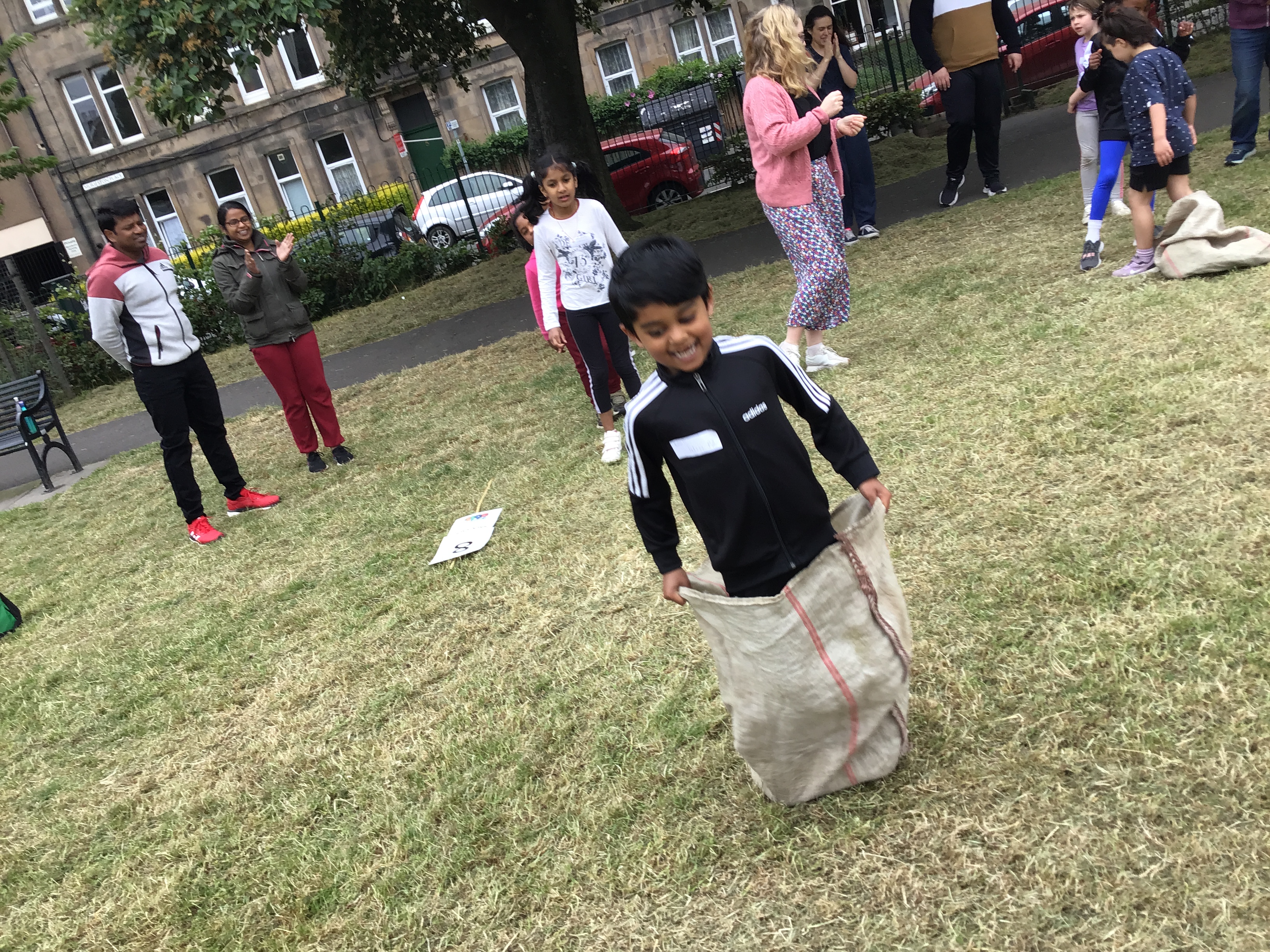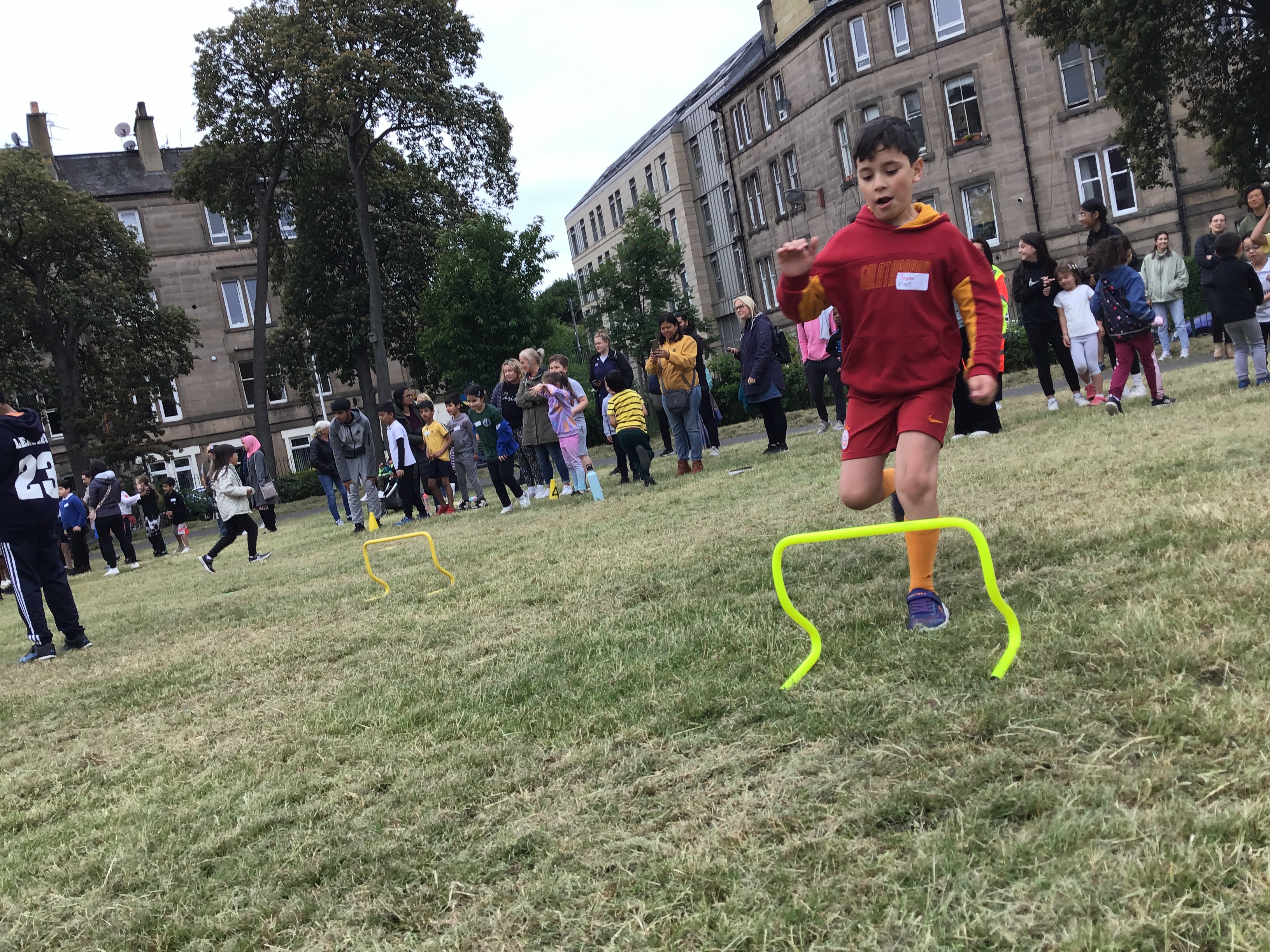 Our lower school went first split into country teams to try lots of stations with sports from football to Javelin. The sack race station was particular fun.