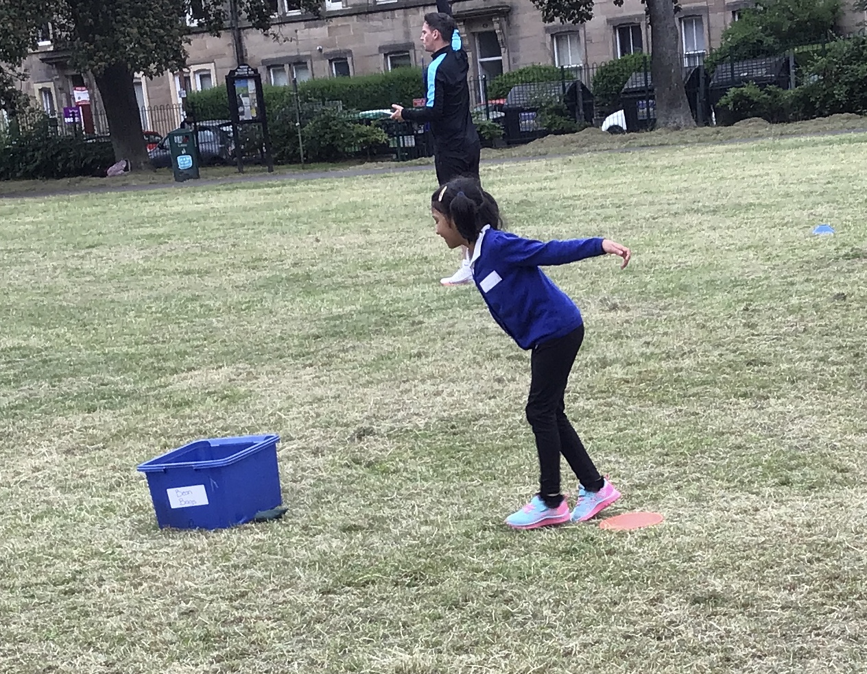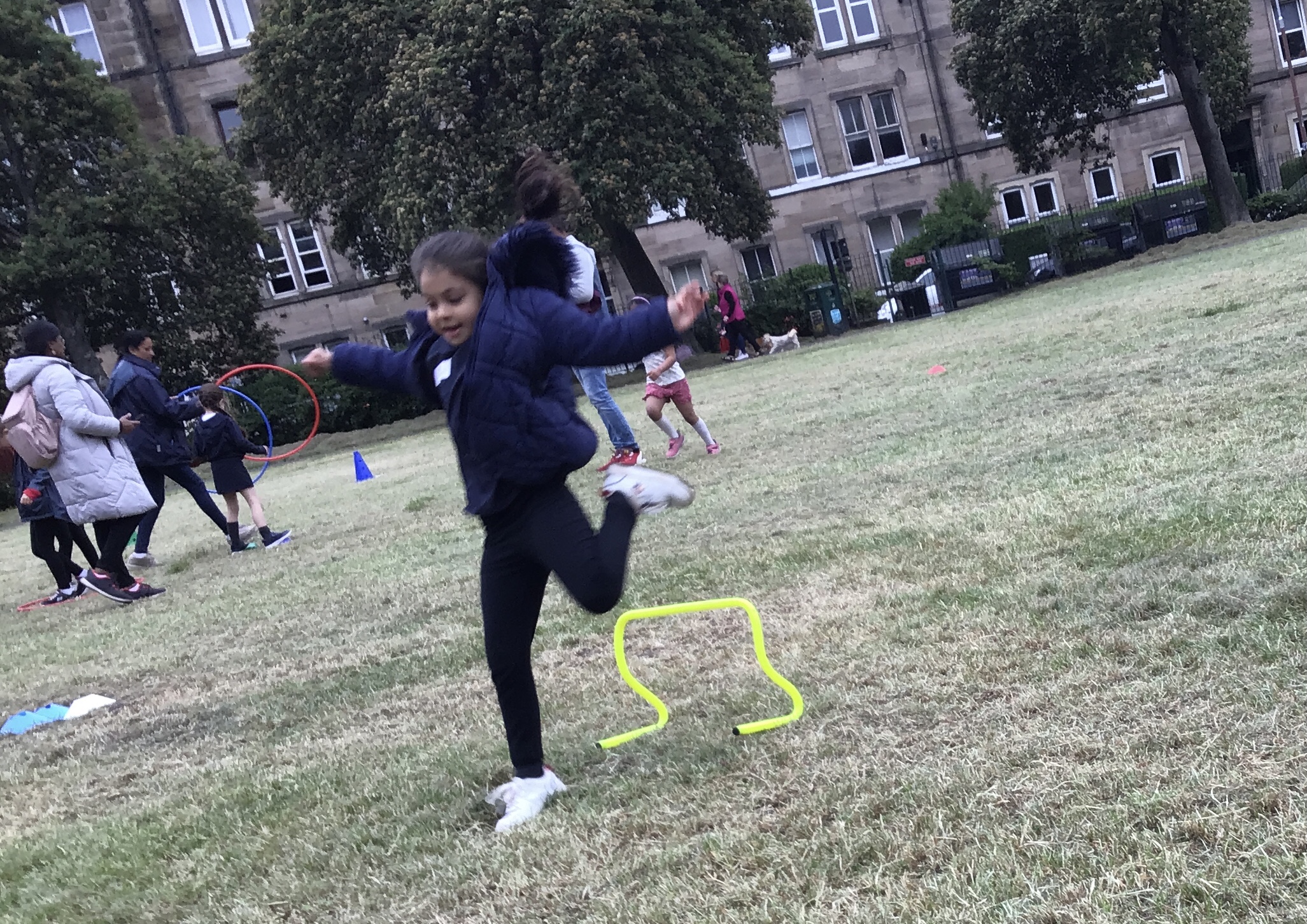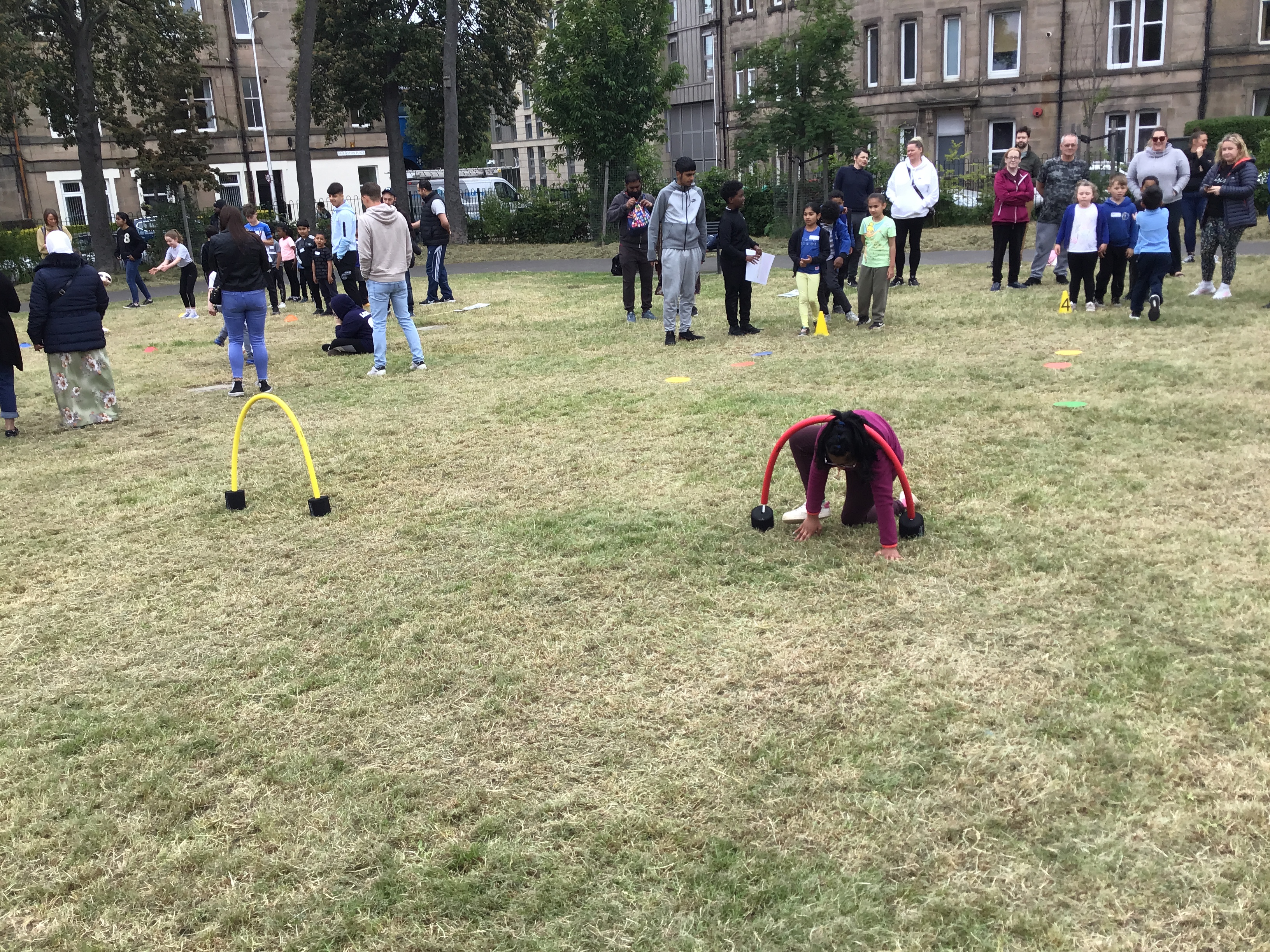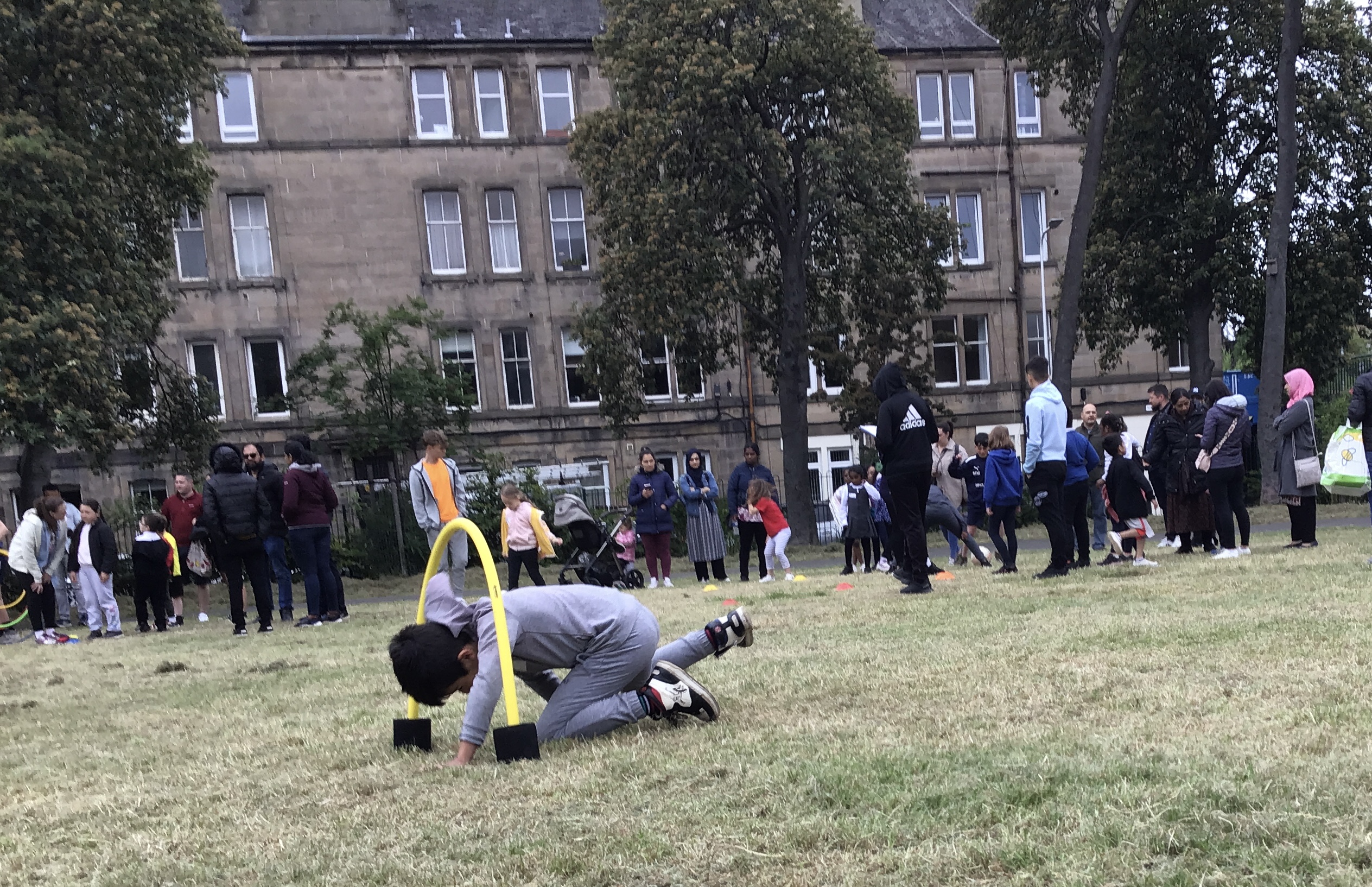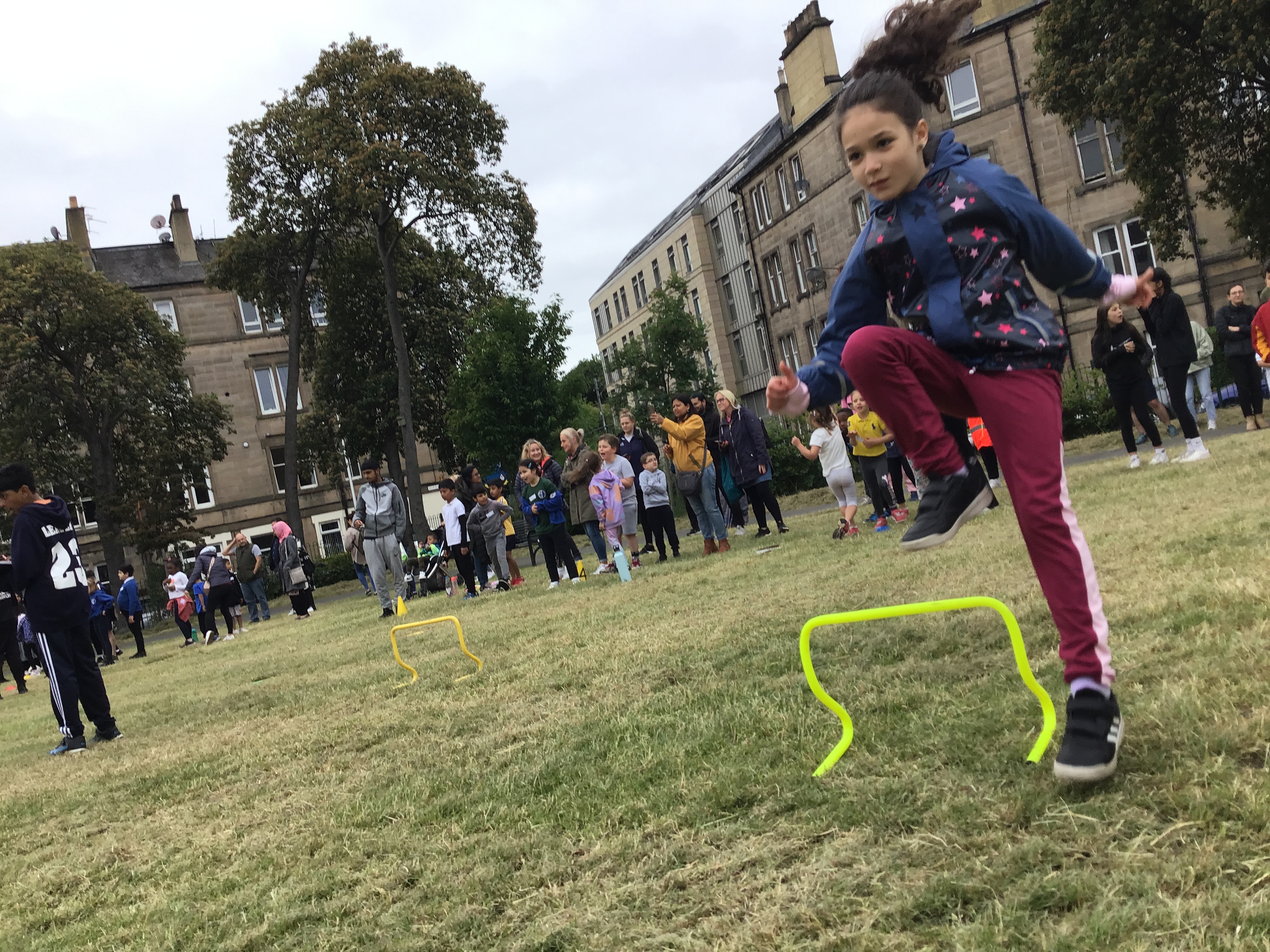 Our lower school went first split into country teams to try lots of stations with sports from football to Javelin. The sack race station was particular fun.