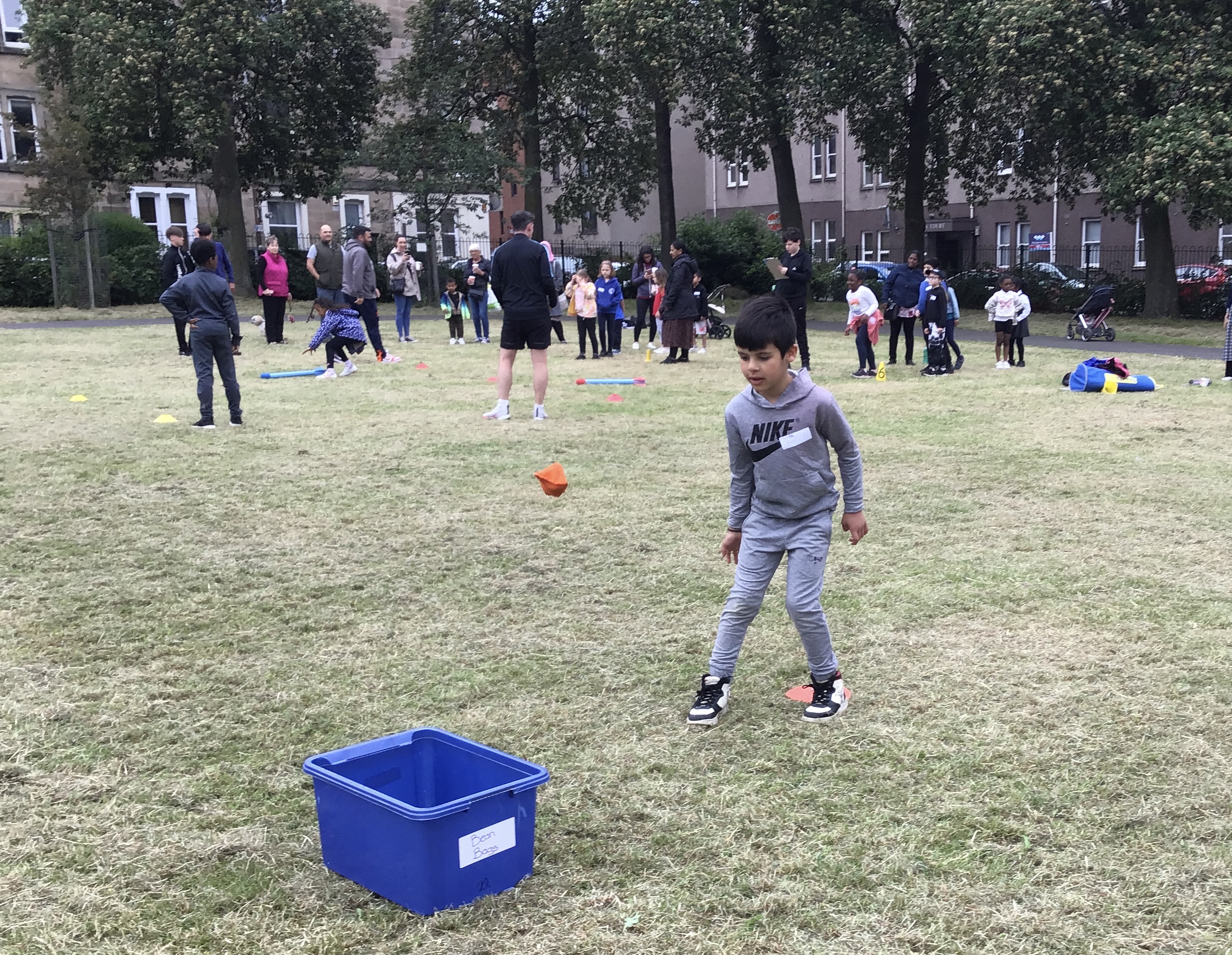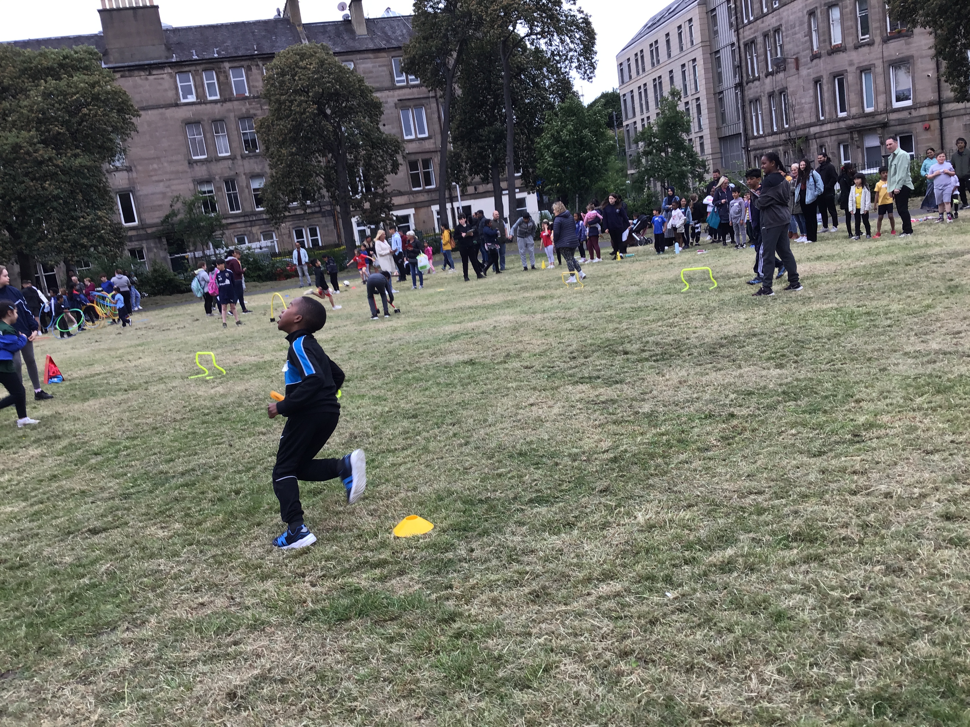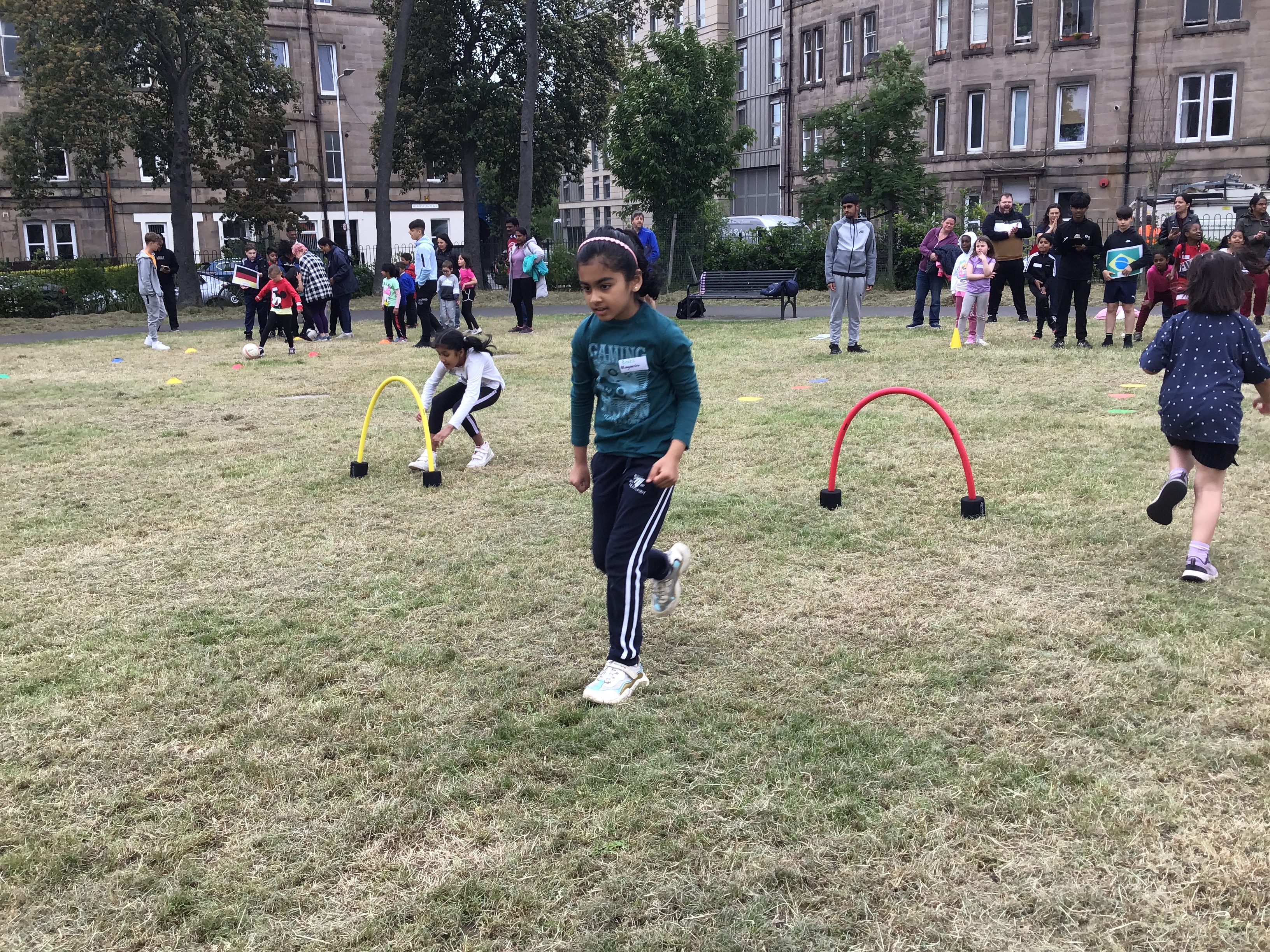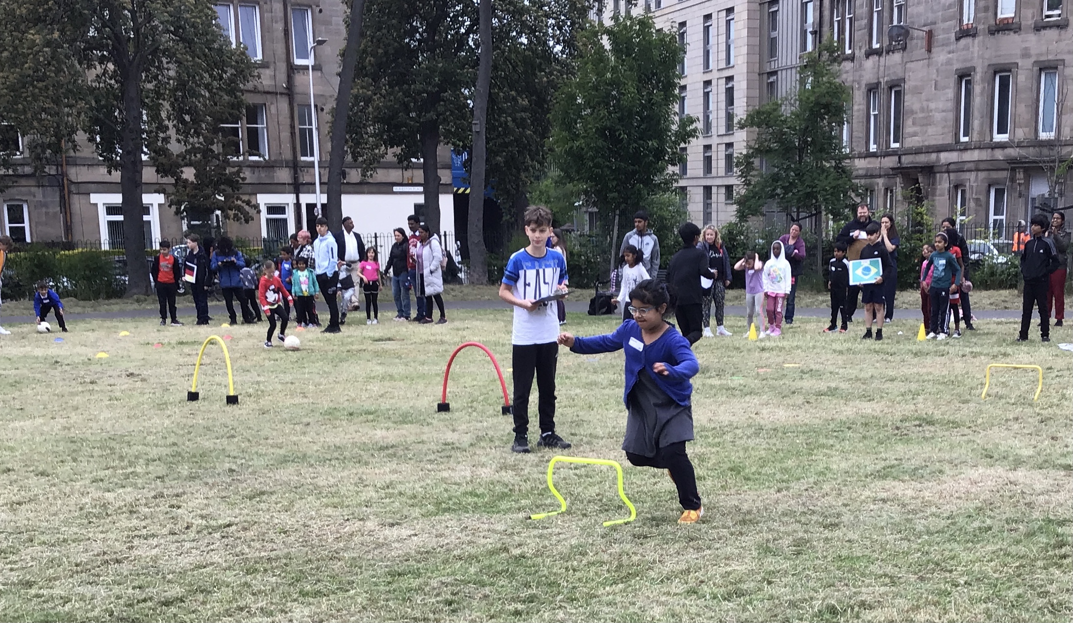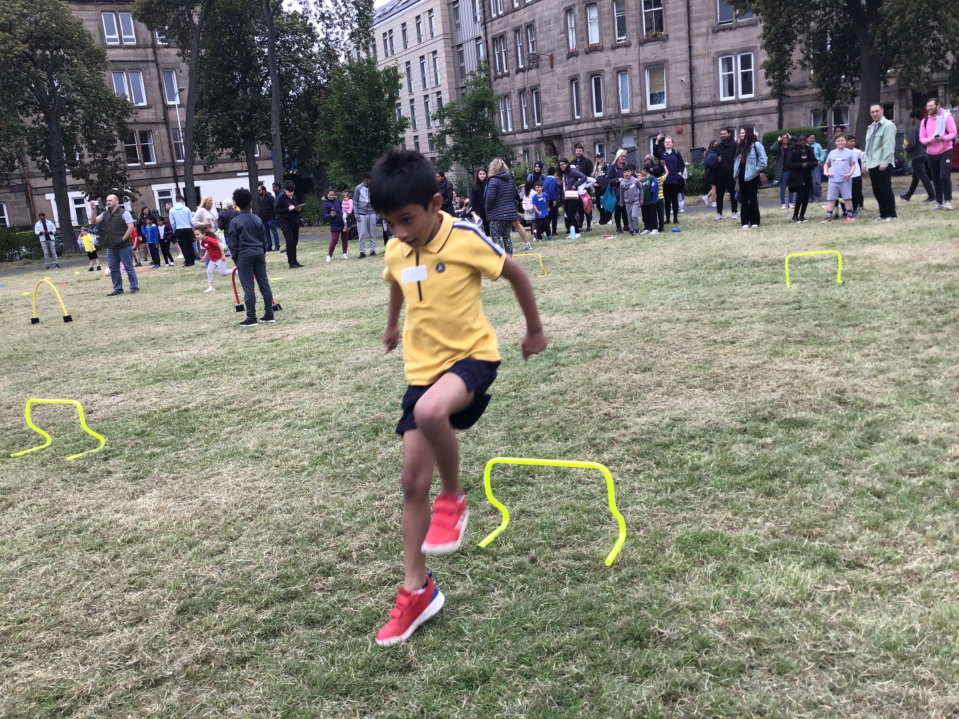 Our lower school went first split into country teams to try lots of stations with sports from football to Javelin. The sack race station was particular fun.