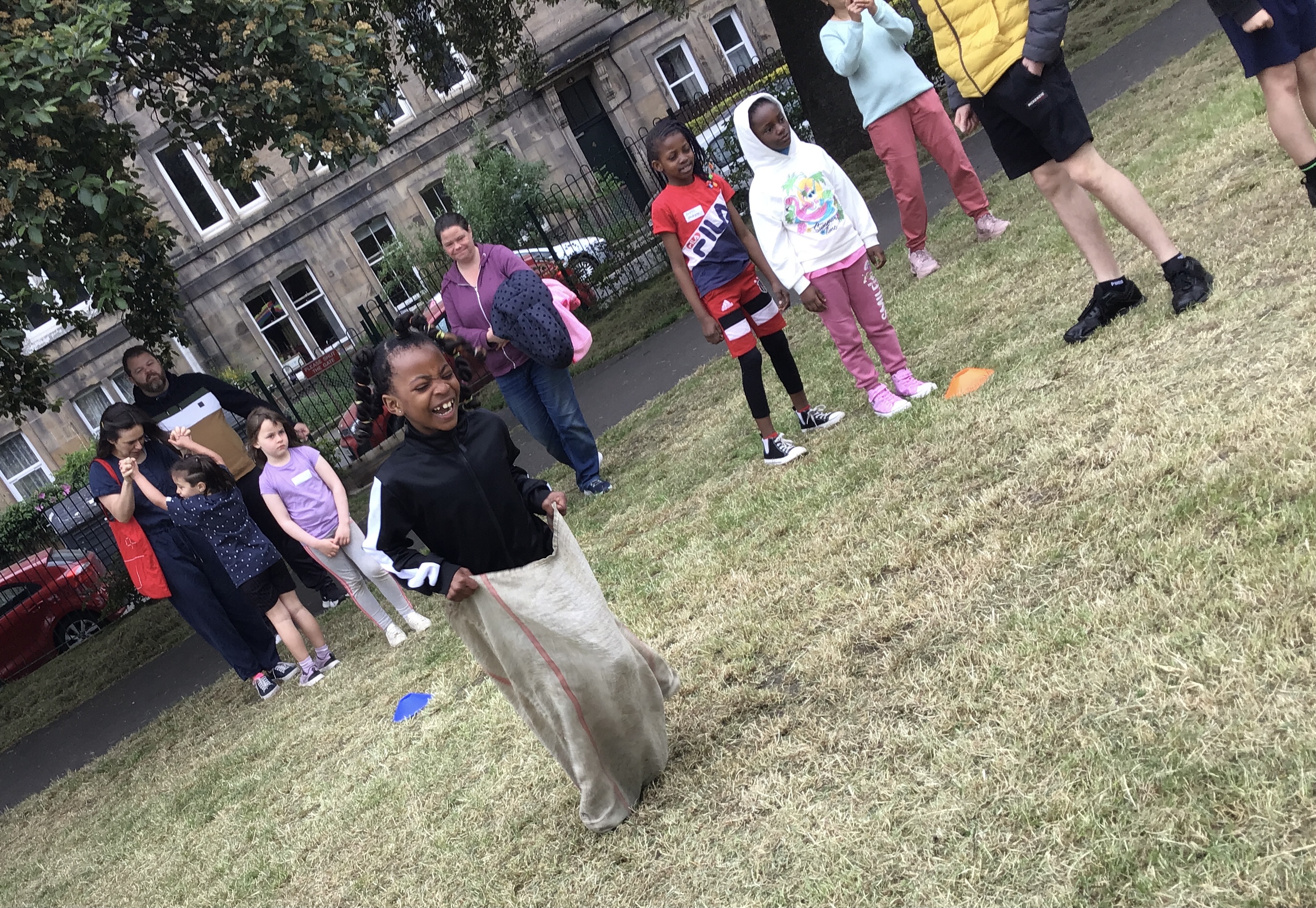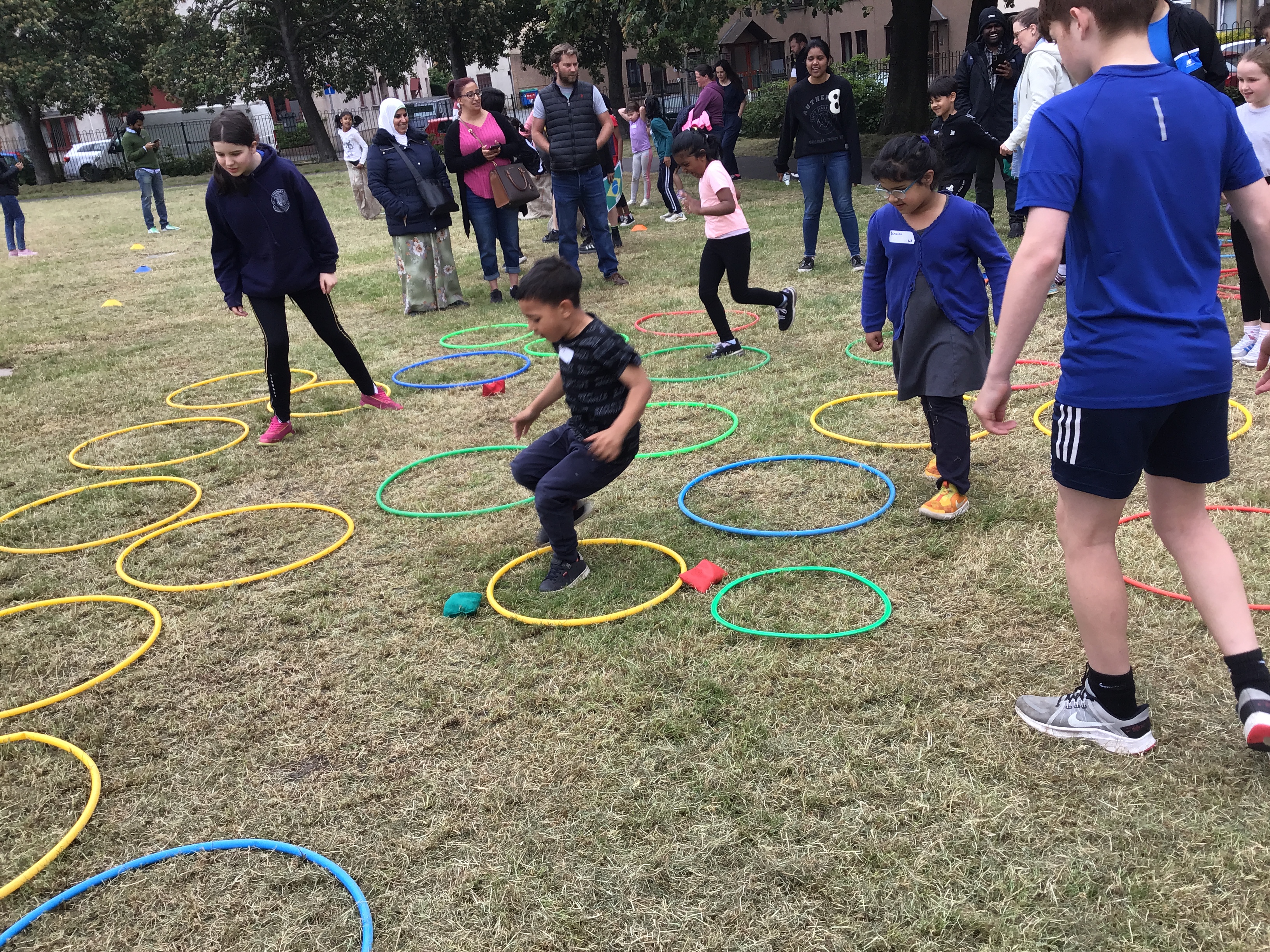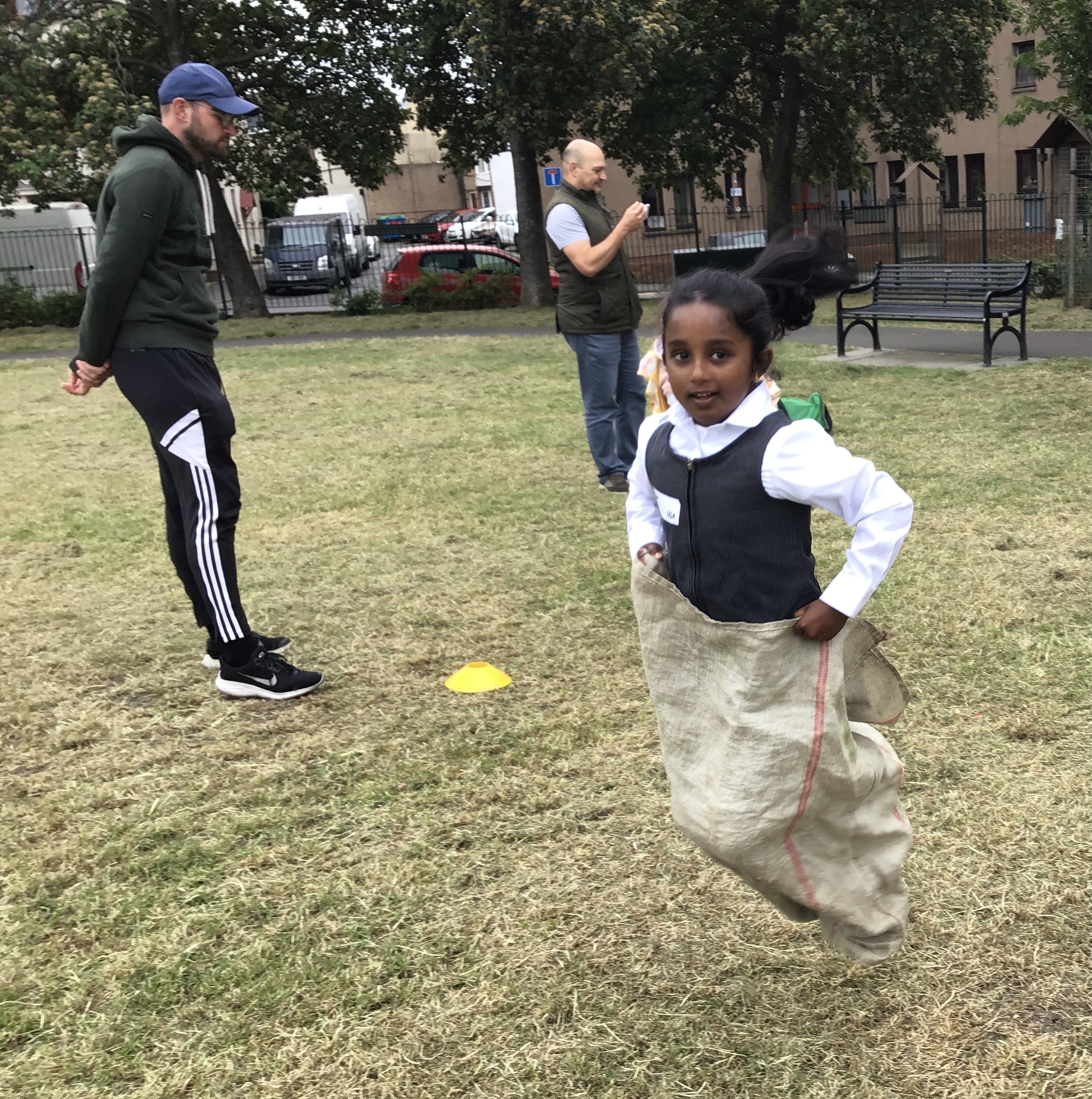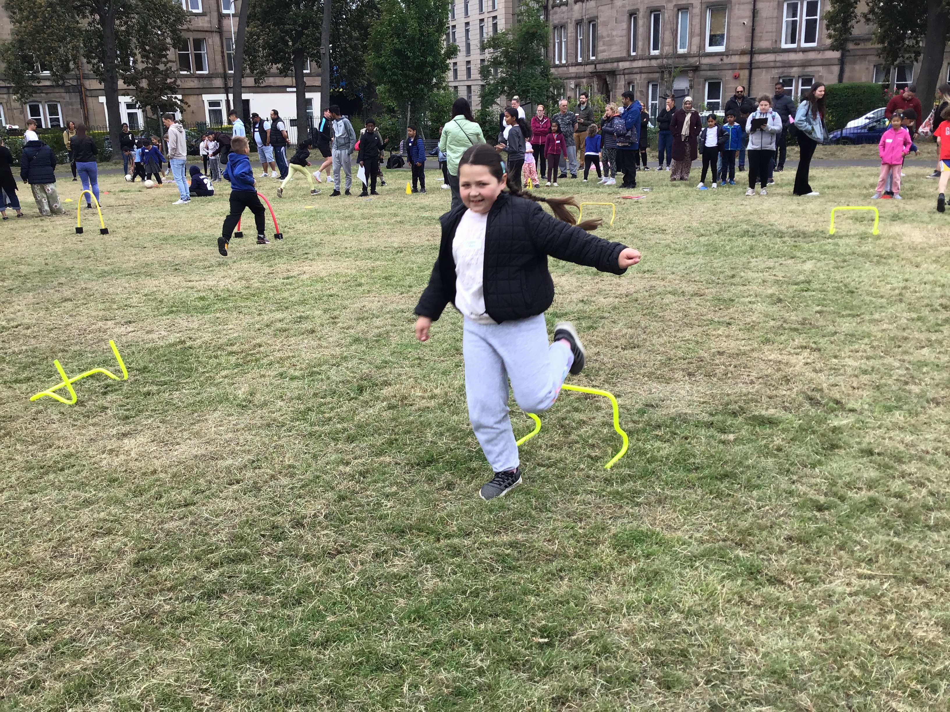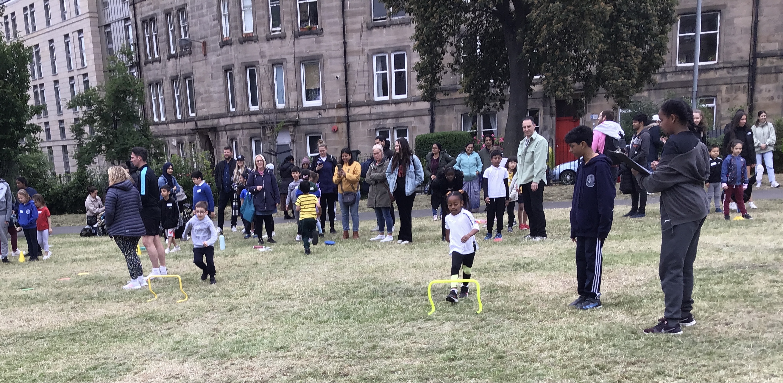 Our lower school went first split into country teams to try lots of stations with sports from football to Javelin. The sack race station was particular fun.