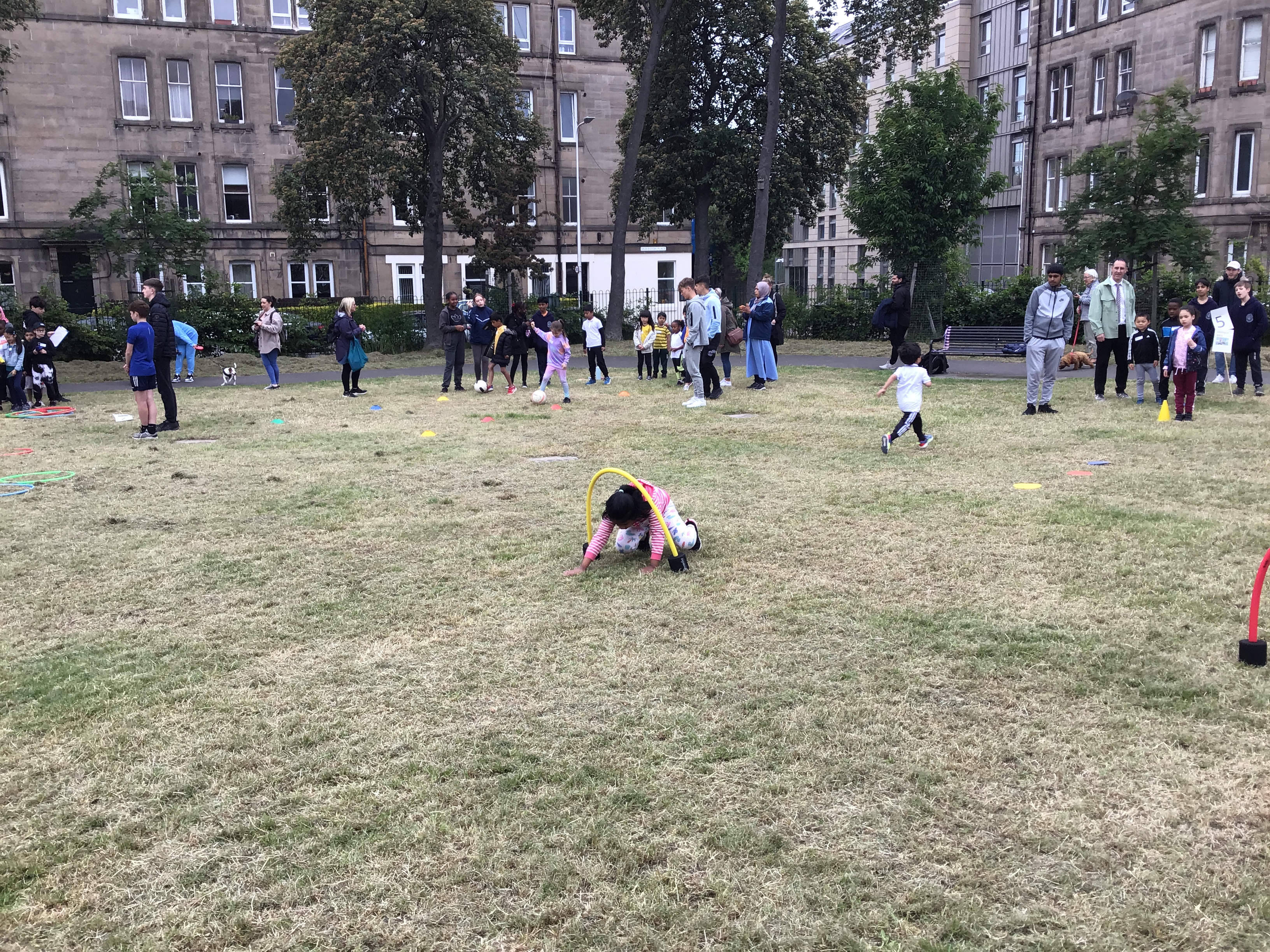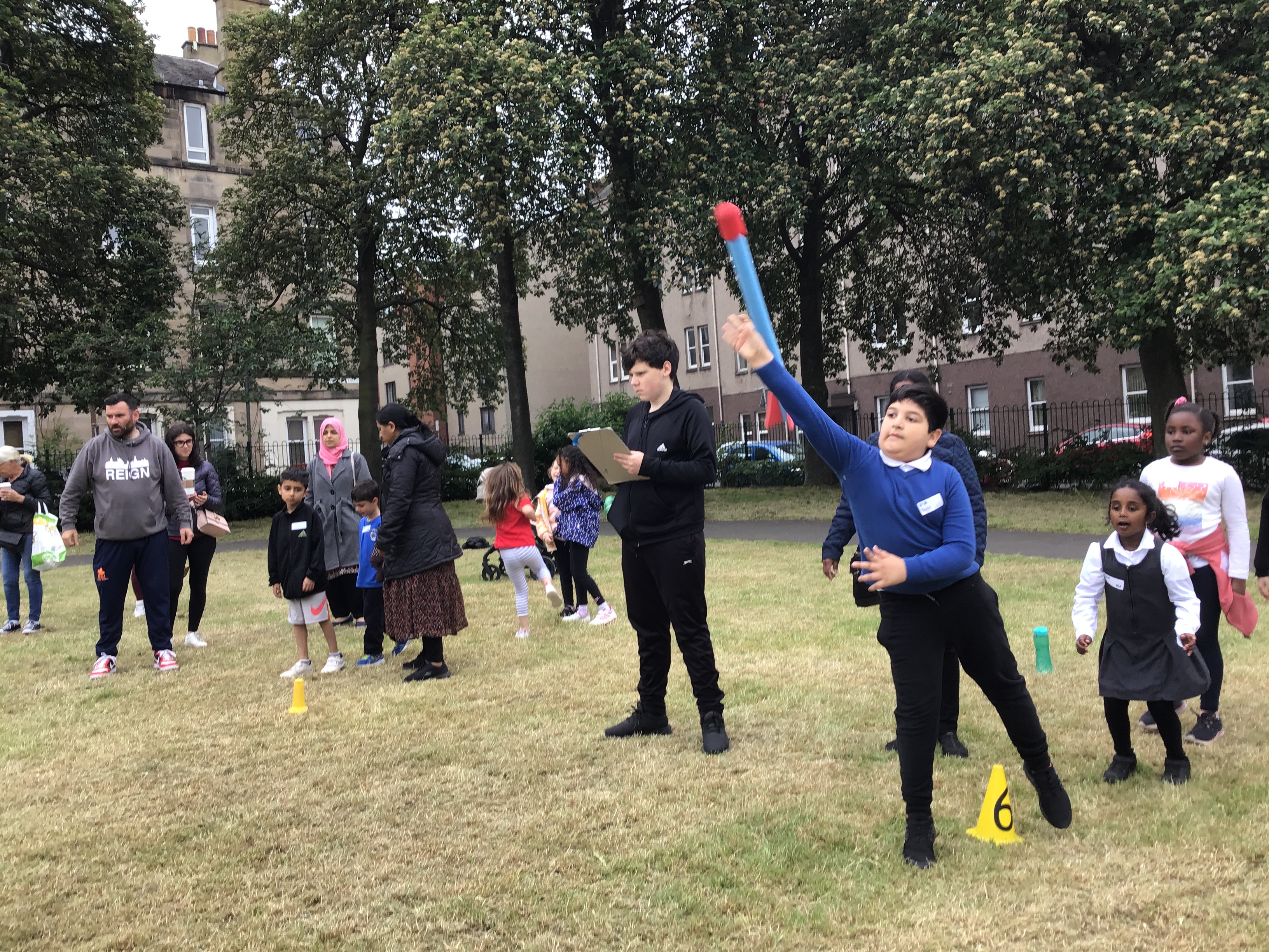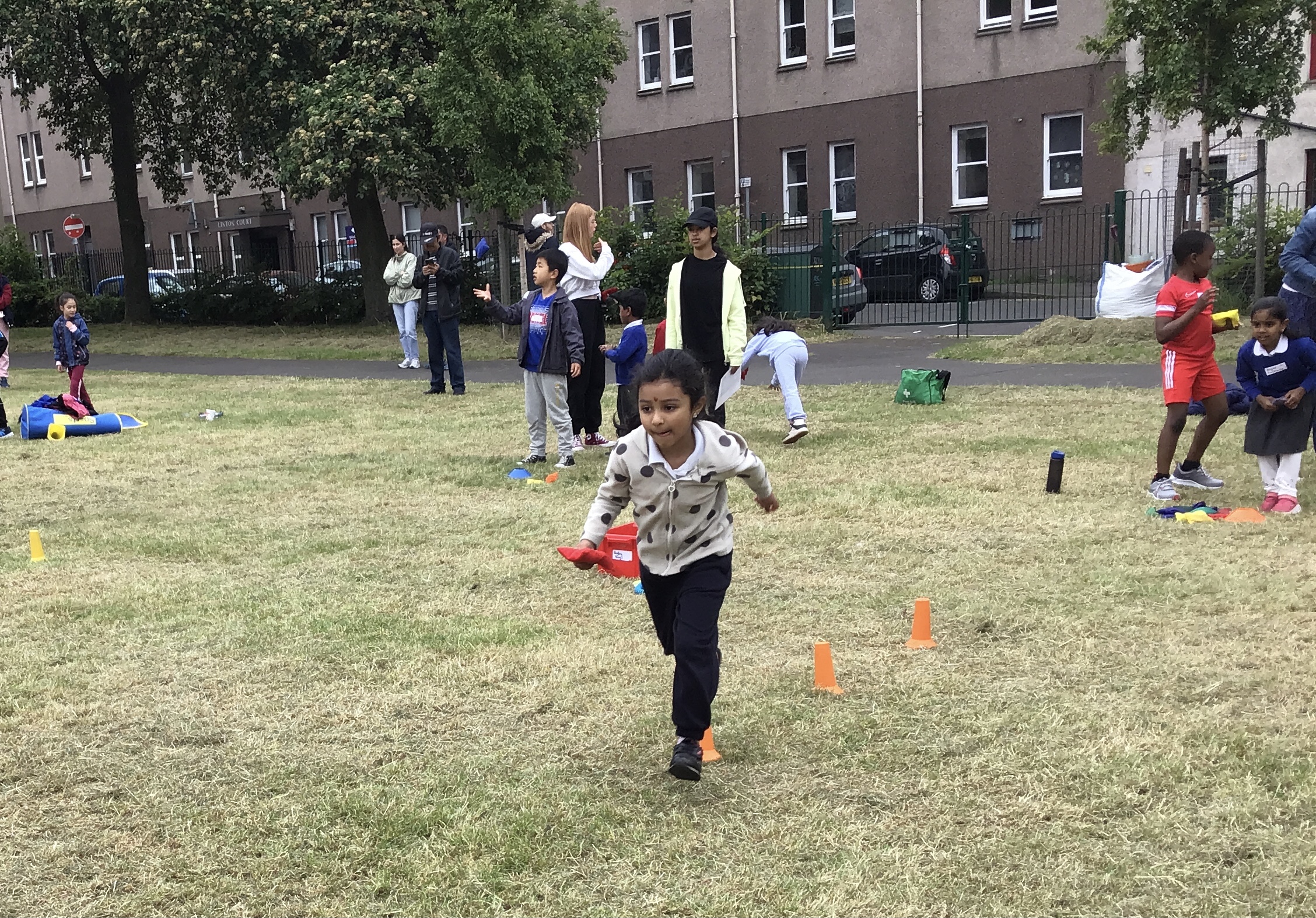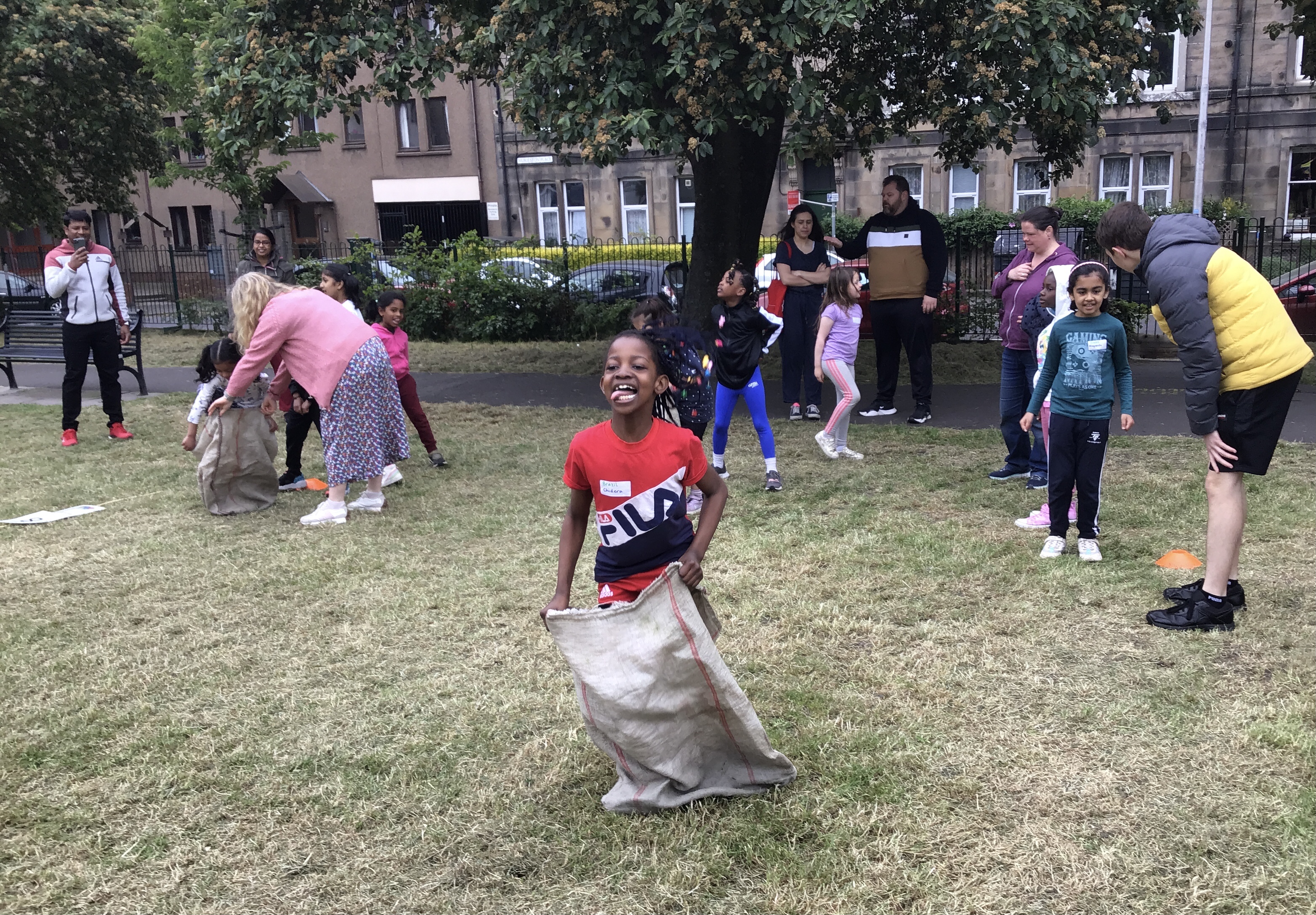 Our lower school went first split into country teams to try lots of stations with sports from football to Javelin. The sack race station was particular fun.