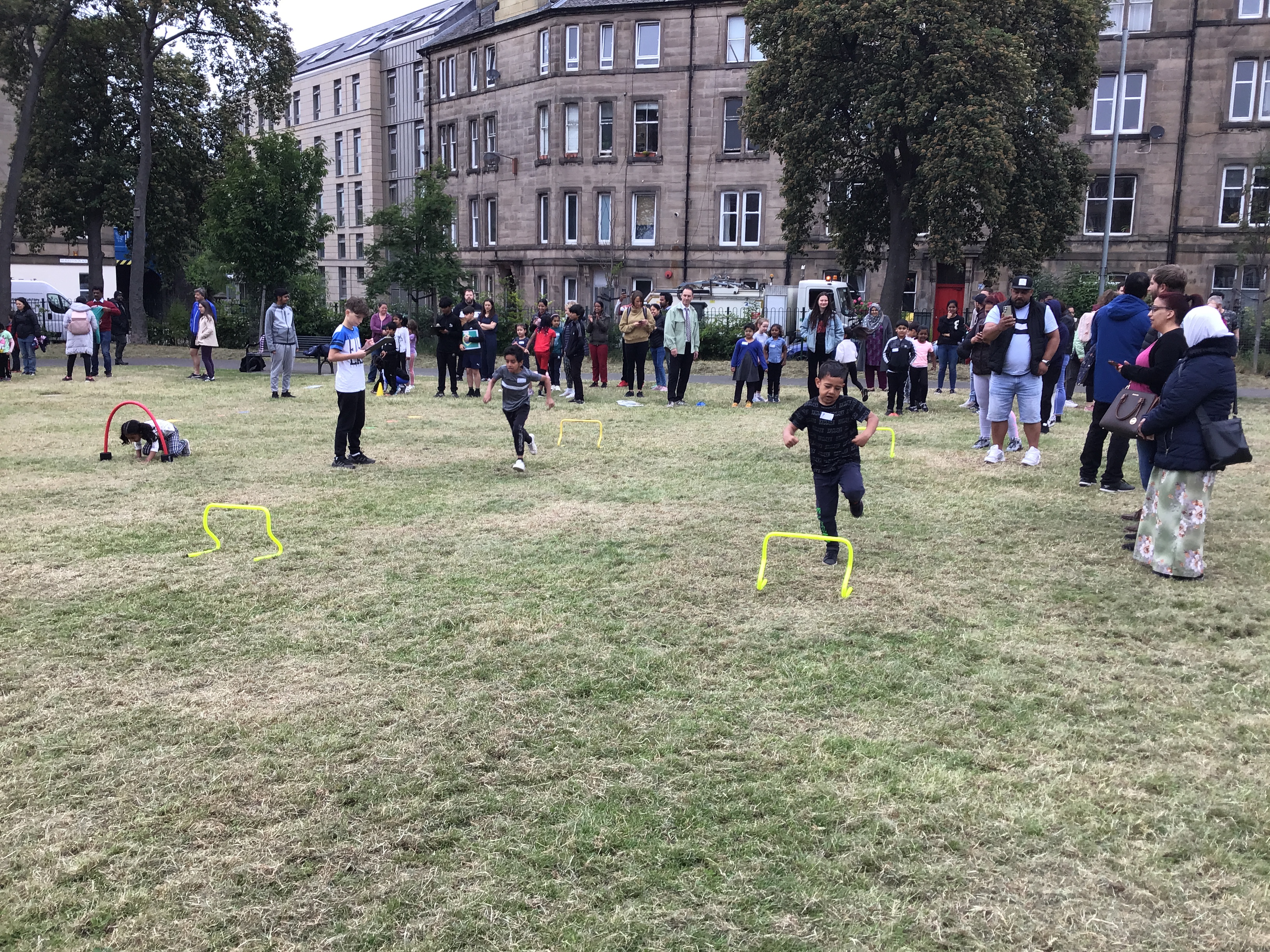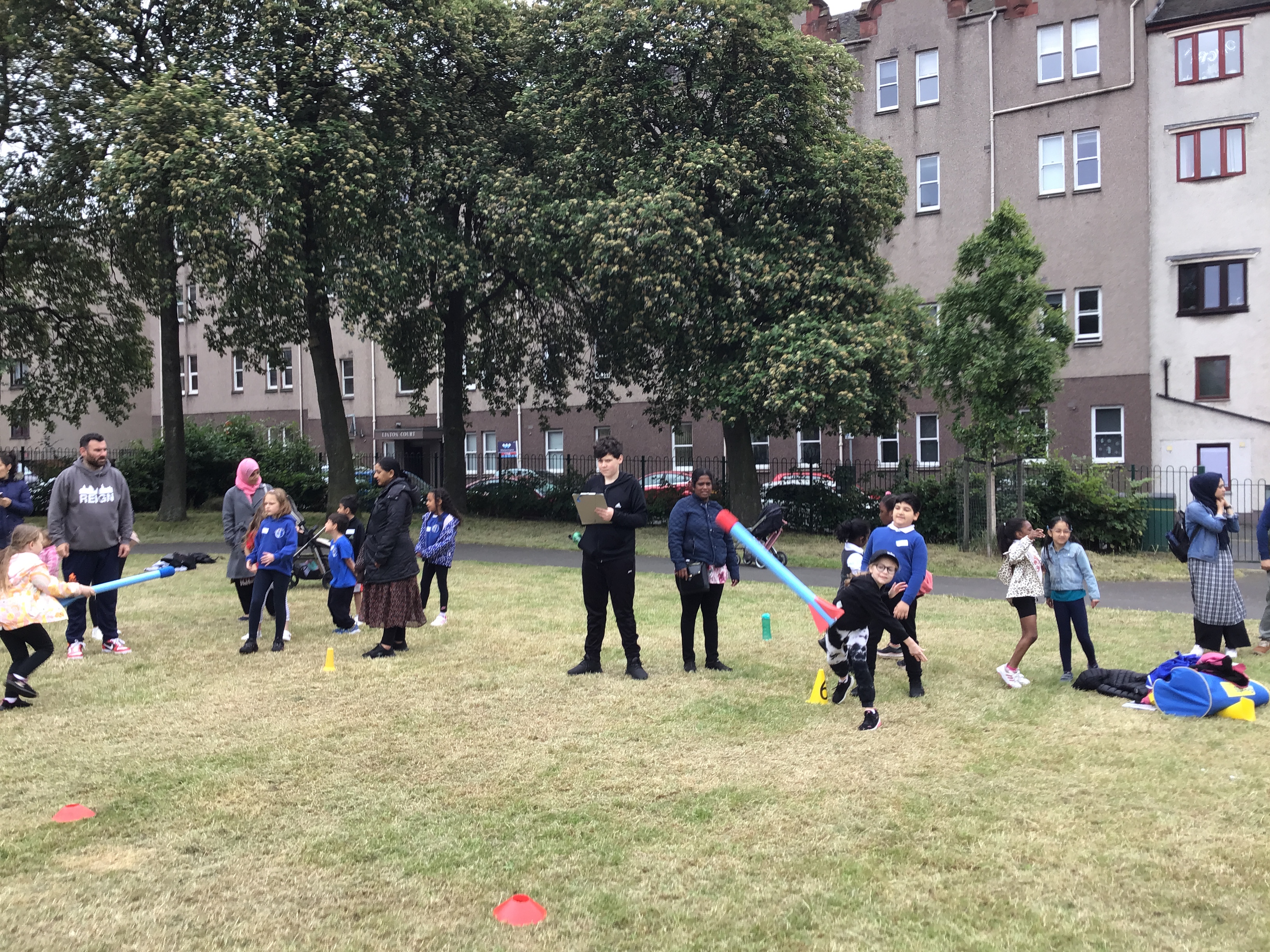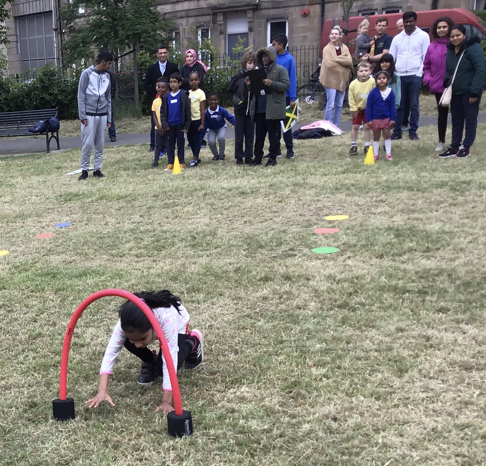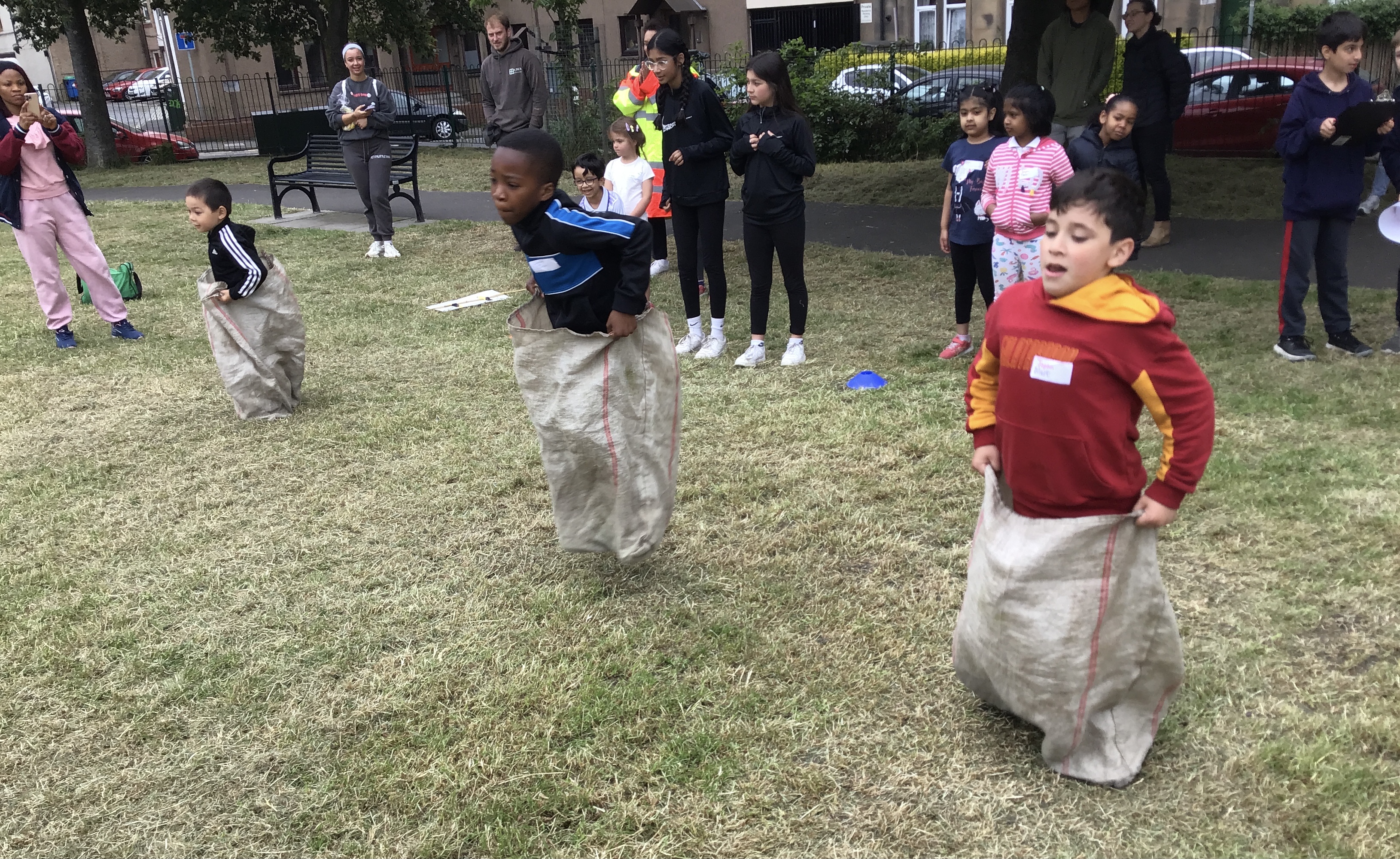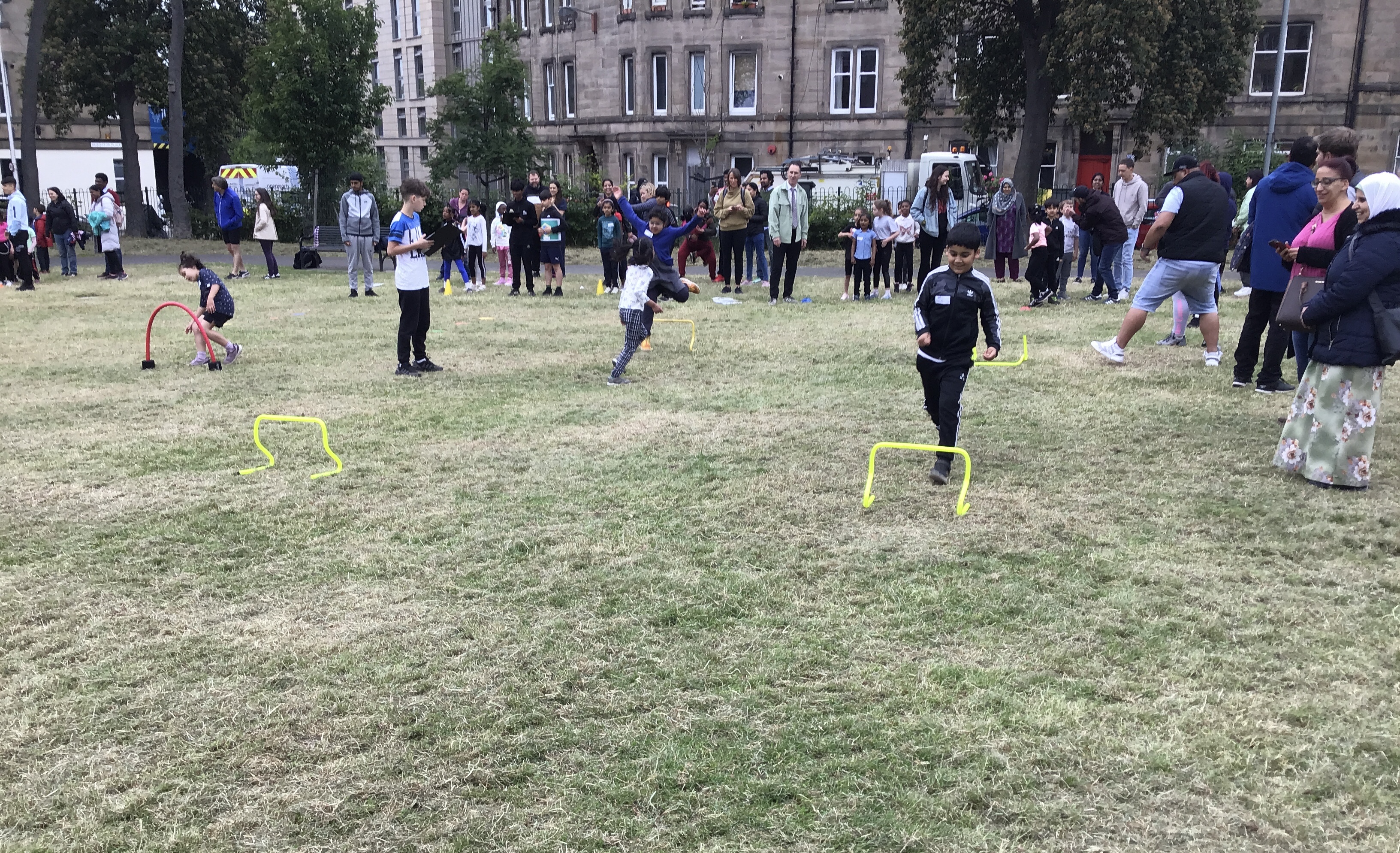 Our lower school went first split into country teams to try lots of stations with sports from football to Javelin. The sack race station was particular fun.
