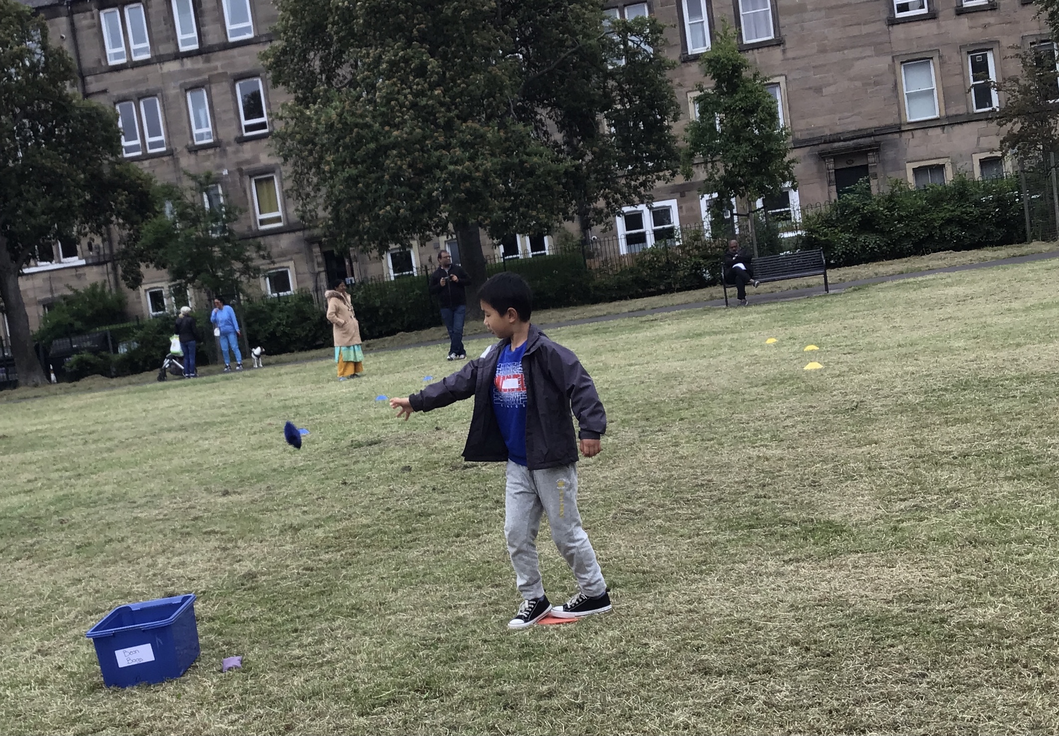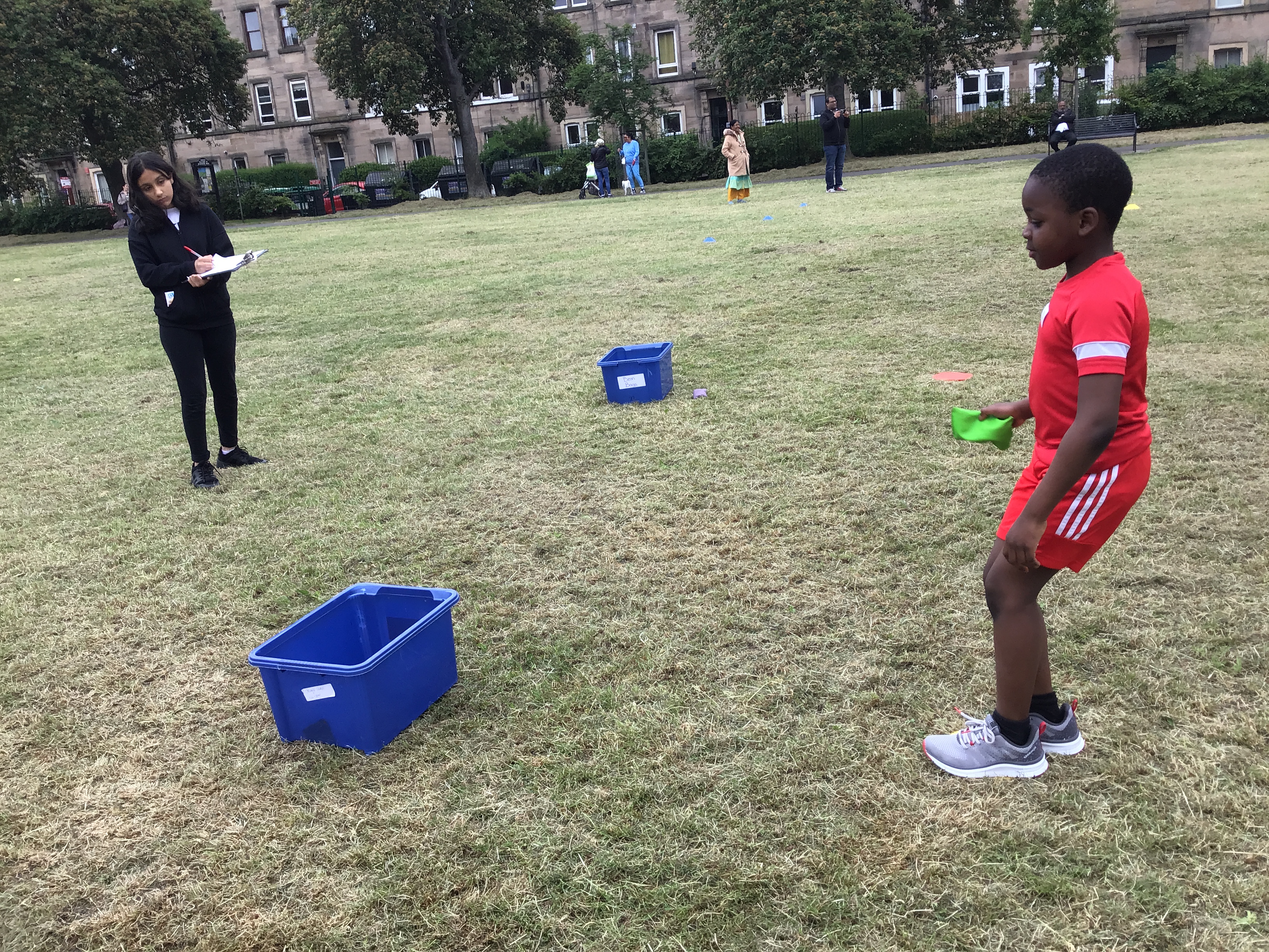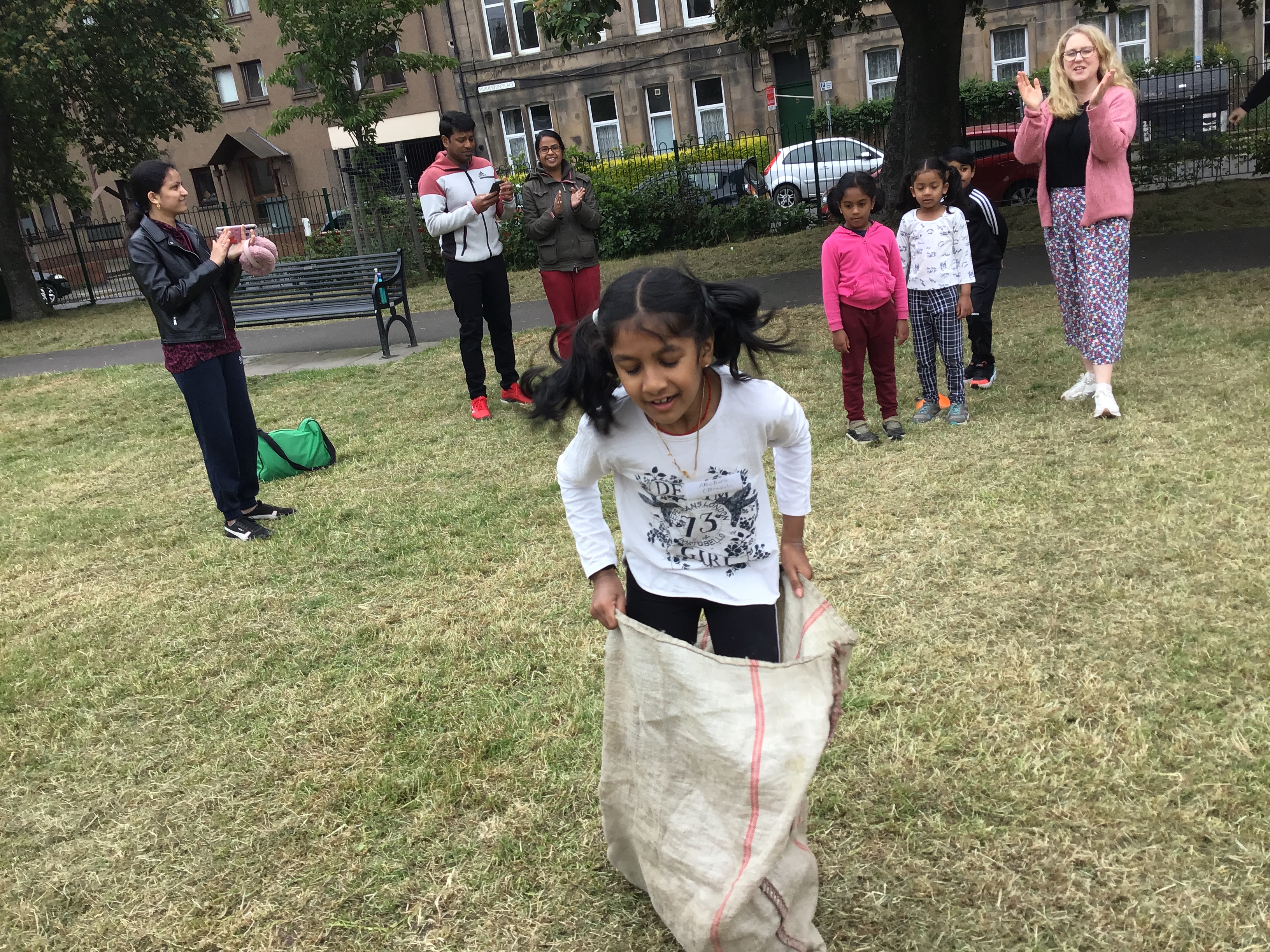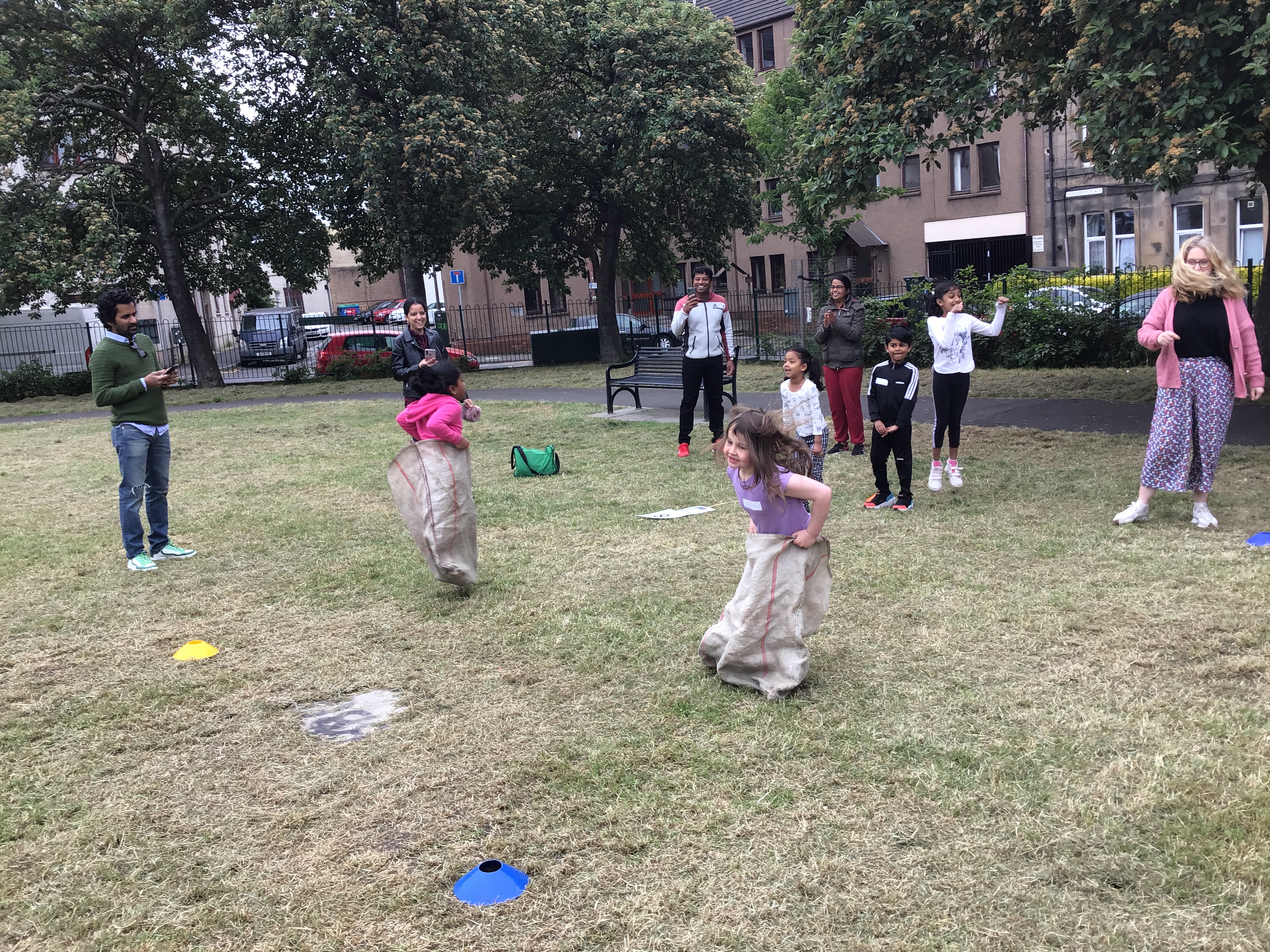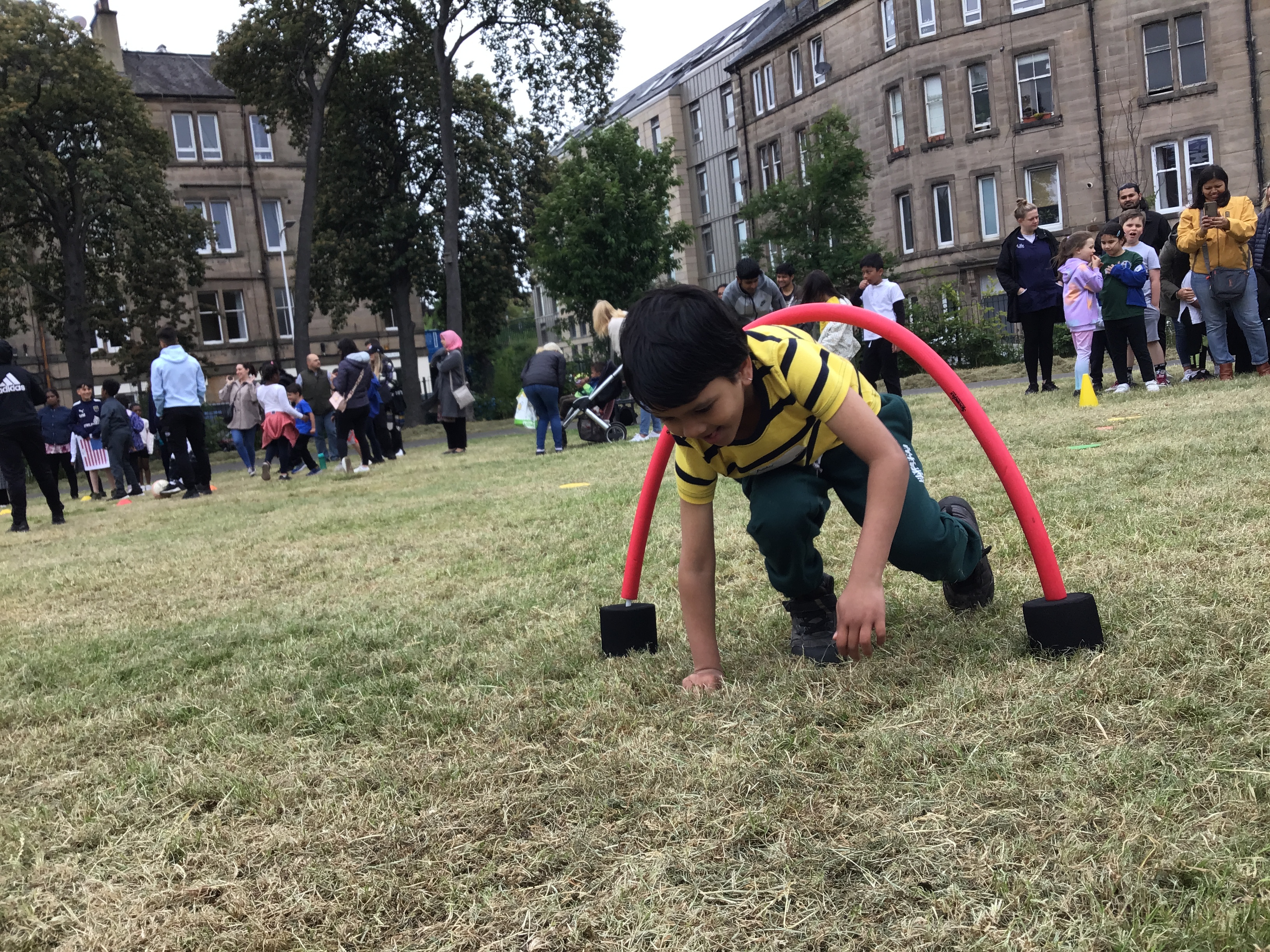 Our lower school went first split into country teams to try lots of stations with sports from football to Javelin. The sack race station was particular fun.