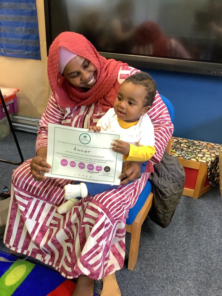 The lessons gave the children an opportunity to share their feelings and experiences. The children especially enjoyed the art activities, learning how to look after a baby and thinking of their wishes for Baby Ammar as he grows up. Last week the children said a big thank you and fond goodbye to Ammar and Zeinab. This week the children were delighted to receive their well deserved certificates.